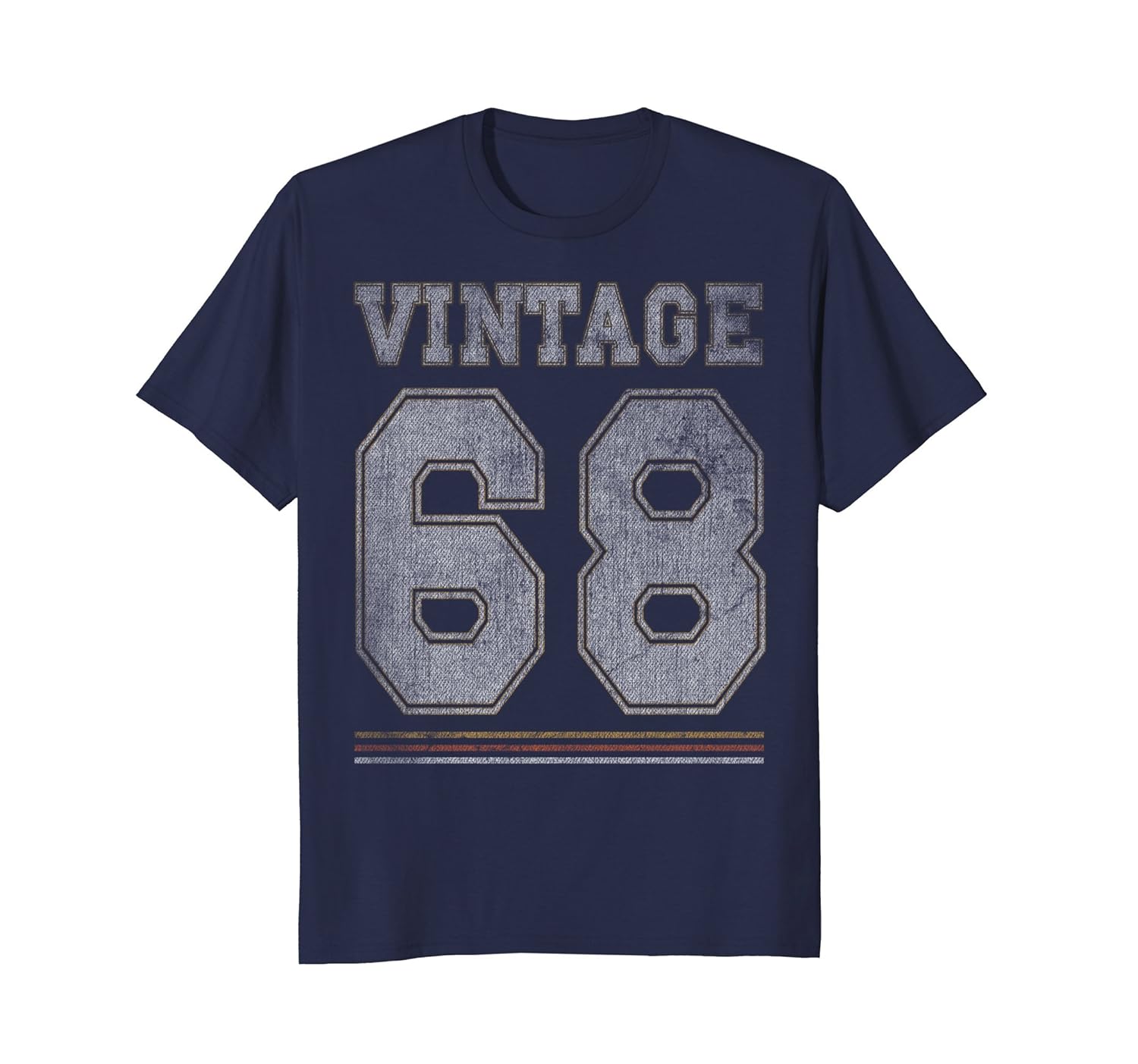 Solid colors: 100% Cotton; Heather Grey: 90% Cotton, 10% Polyester; All Other Heathers: 50% Cotton, 50% Polyester; Imported; Machine wash cold with like colors, dry low heat; Vintage 68 – 50 Years Old 50th Birthday Gift T shirt, vintage 1968 T Shirt; Lightweight, Classic fit, Double-needle sleeve and bottom hem