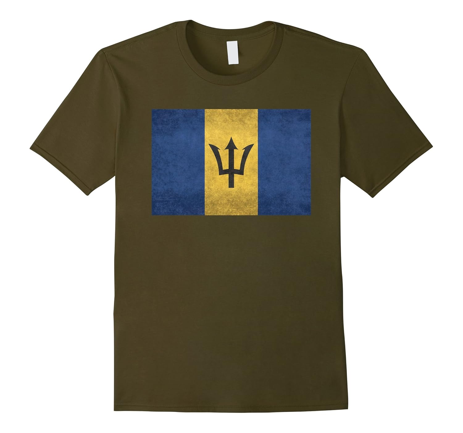 Solid colors: 100% Cotton; Heather Grey: 90% Cotton, 10% Polyester; All Other Heathers: 65% Cotton, 35% Polyester, Imported, Machine wash cold with like colors, dry low heat, barbados, barbadian, Bajan, flag, flags, vintage, retro, grungy, distressed, aged, worn, Barbadian Flag T-Shirt in Vintage Grungy Retro Style, Lightweight, Classic fit, Double-needle sleeve and bottom hem