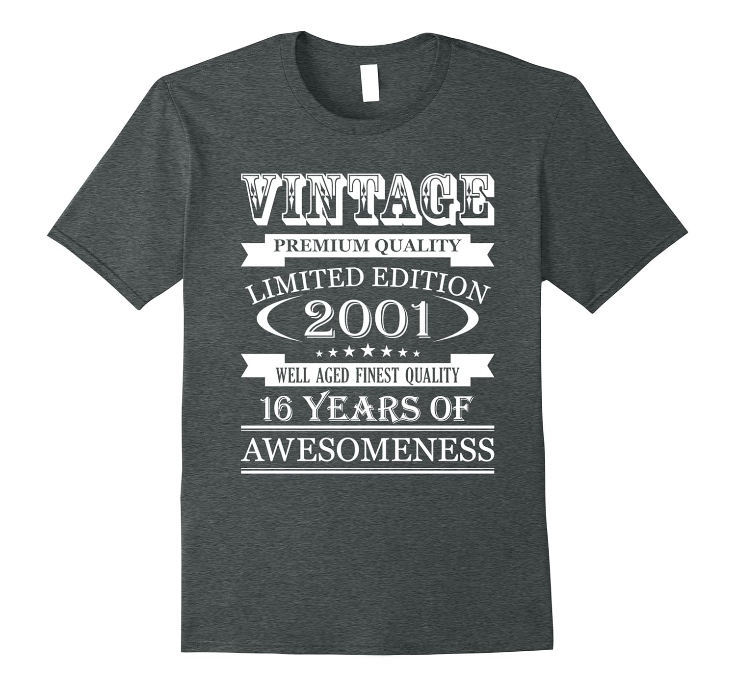 Solid colors: 100% Cotton; Heather Grey: 90% Cotton, 10% Polyester; All Other Heathers: 65% Cotton, 35% Polyester, Imported, Machine wash cold with like colors, dry low heat, Look for a gift for a 16th Birthday celebration to your son or daughter, nephew or niece or friend the this super cute made in 2001 t-shirt for 16 years old teenager boy and girl is going to be a perfect birthday present. Made for people fabulous since 2001 whose 16 th birthday year is the best year for them. If you need same t shirt for different person born in another year click on the brand name: Vintage Shirts Years of Awesomeness, Vintage 16th years old shirt gift for teens women and men awesome since 2001 year. Nice birthday gift idea to make a birthday boy or girl feel great and have fun celebrating b-day with friends on a birthday party. On this adorable t-shirt for sixteen years old person you see so nice words like 16 years of awesomeness and well aged that the person you give this shirt to will surely love it. Lightweight, Classic fit, Double-needle sleeve and bottom hem