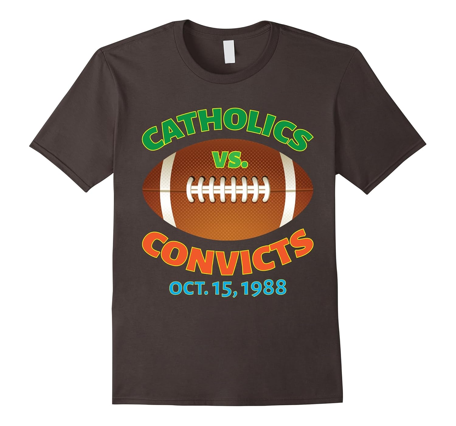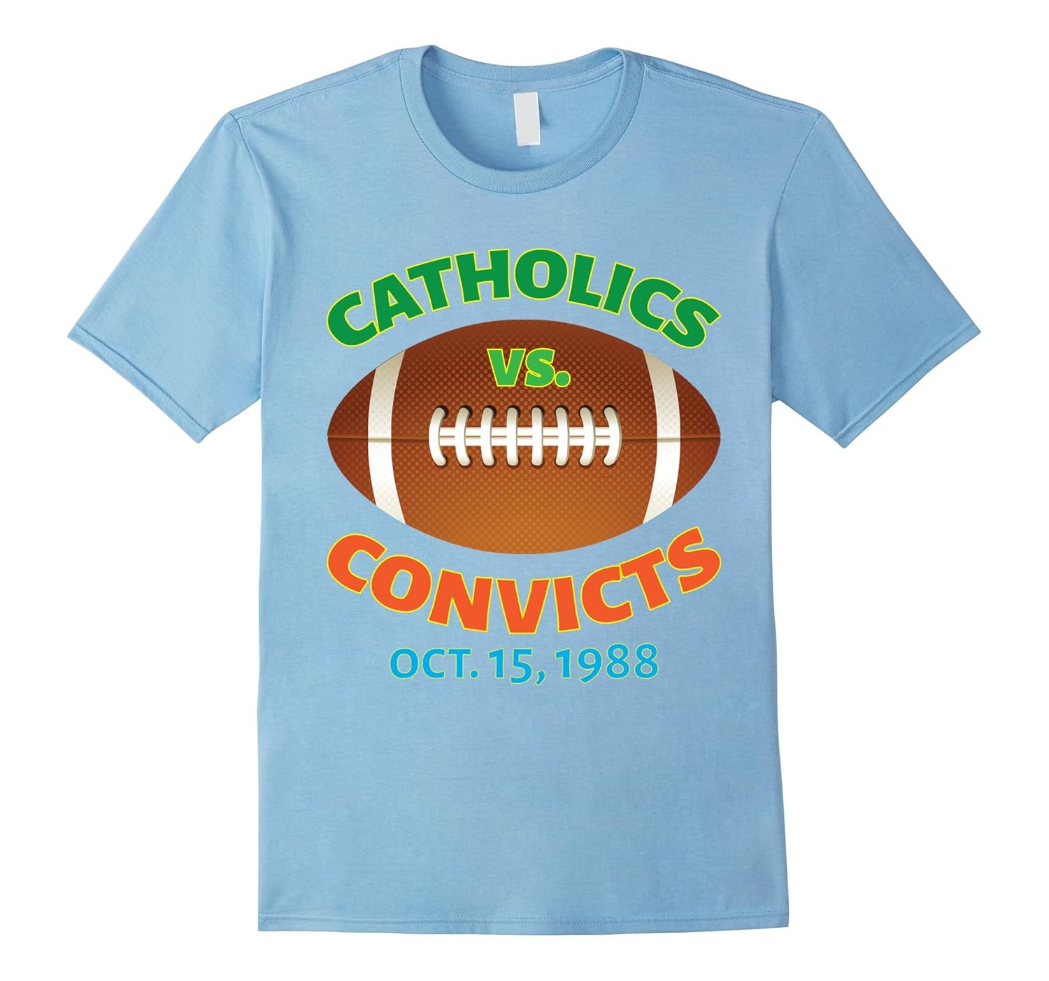 Solid colors: 100% Cotton; Heather Grey: 90% Cotton, 10% Polyester; All Other Heathers: 65% Cotton, 35% Polyester, Imported, Machine wash cold with like colors, dry low heat, Vintage Catholics vs Convicts T Shirt, Vintage Catholics vs Convicts Shirt, Lightweight, Classic fit, Double-needle sleeve and bottom hem