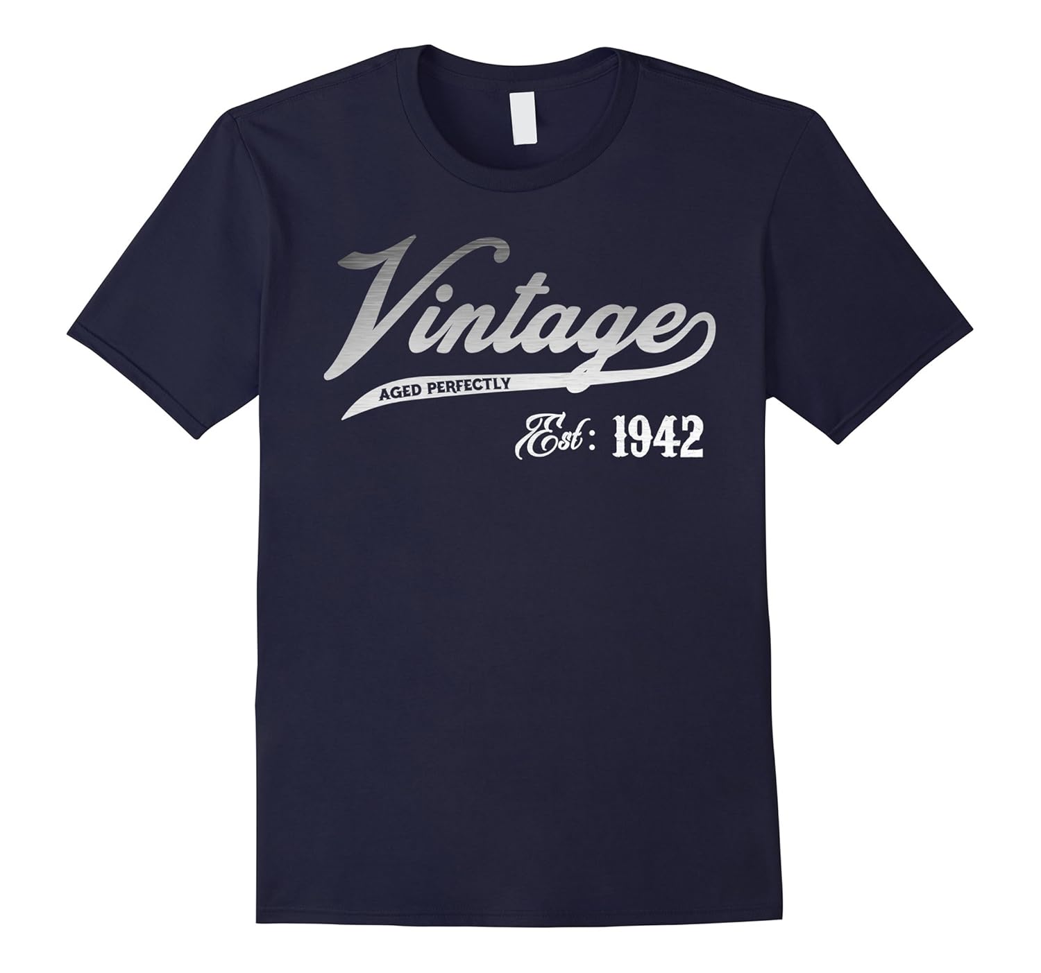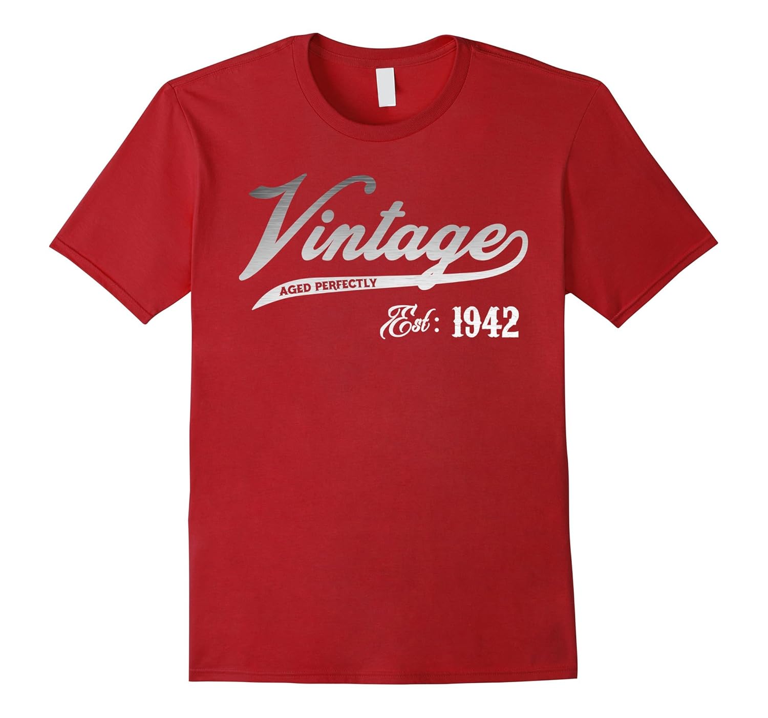 Solid colors: 100% Cotton; Heather Grey: 90% Cotton, 10% Polyester; All Other Heathers: 65% Cotton, 35% Polyester, Imported, Machine wash cold with like colors, dry low heat, Perfect Birthday Gift for people who are born in 1942. Vintage gold effect Graphic Tee Shirt for 75 years old bday. Vintage 1942 Aged Perfectly, also available different sizes for men women, him her mom dad, ladies girls boys teens, grandma and grandpa. FOR A MORE LOOSE FIT, PLEASE ORDER A SIZE UP. (Tags: xmas, christmas, birthday, dad, mom, wife, son, daughter, husband, boyfriend, girl, birthday, valentine, halloween, fartherday, thanksgiving day, family, auntie, niece, nephew, friends,family members), Lightweight, Classic fit, Double-needle sleeve and bottom hem