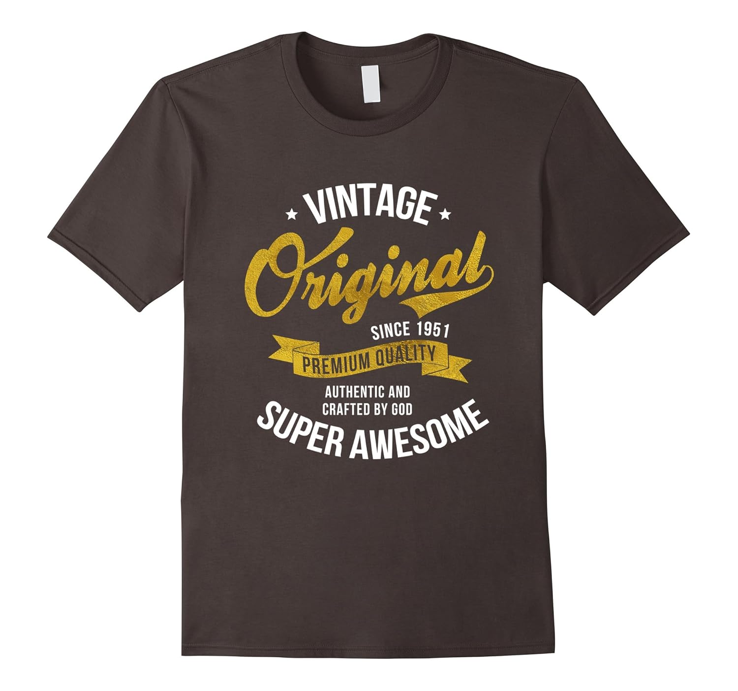 Solid colors: 100% Cotton; Heather Grey: 90% Cotton, 10% Polyester; All Other Heathers: 65% Cotton, 35% Polyester, Imported, Machine wash cold with like colors, dry low heat, Perfect Birthday Gift for people who are born in 1951. Vintage Graphic effect Tee Shirt Aged 66 years old bday. Vintage Original Since 1951 Premium Quality, Authentic and Crafted by God, Super Awesome, Vintage Shirt that looks great in five amazing color of your choices and also available different sizes for men women, him her mom dad, ladies girls boys teens, grandma and grandpa. Lightweight, Classic fit, Double-needle sleeve and bottom hem