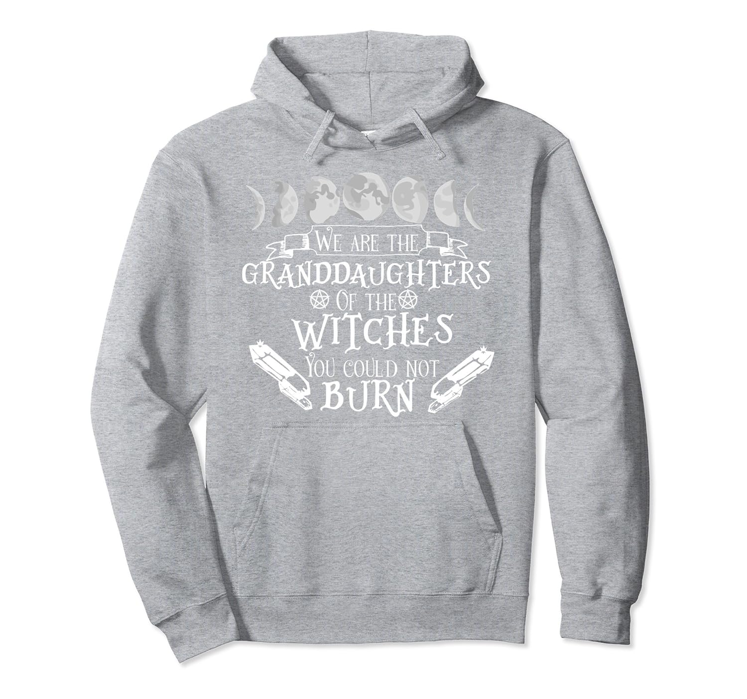 Solid colors: 80% Cotton, 20% Polyester; Heather Grey: 78% Cotton, 22% Poly; Dark Heather: 50% Cotton, 50% Polyester; Imported; Machine wash cold with like colors, dry low heat; Cute We Are the Granddaughters of the Witches You Could Not Burn hoodie for women, girls, Witches, Pagans, and Wiccan. It says, We Are the Granddaughters of the Witches You Could Not Burn. Perfect witches hoodie to wear during Halloween.; This We Are the Granddaughters of the Witches You Couldnt Burn hoodie is great for any witches Halloween costume wardrobe. Witches who love Halloween can wear this inspiring hoodie during Halloween or just because. A cute Halloween gift for witches.; 8.5 oz, Classic fit, Twill-taped neck