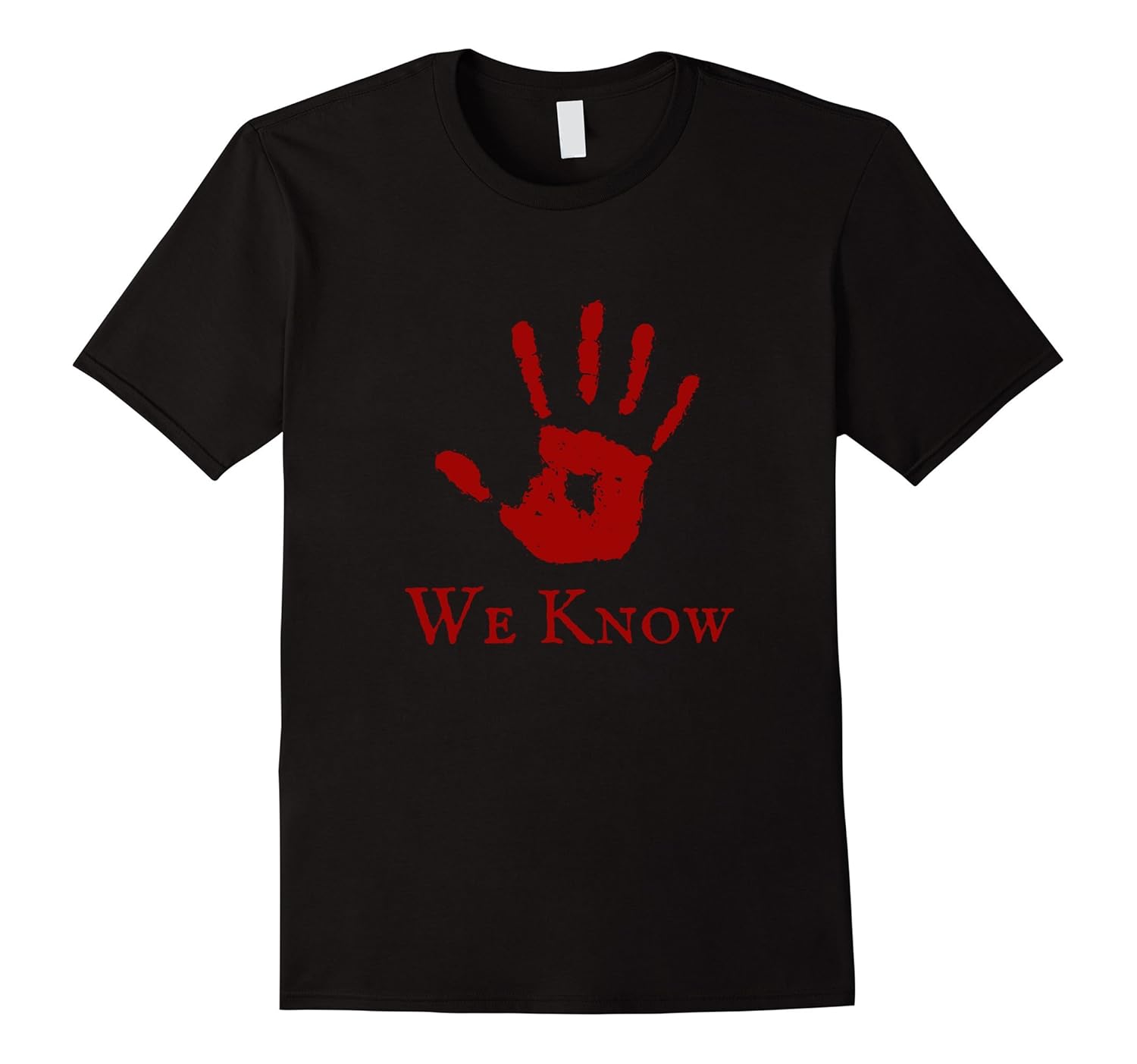 Solid colors: 100% Cotton; Heather Grey: 90% Cotton, 10% Polyester; All Other Heathers: 65% Cotton, 35% Polyester, Imported, Machine wash cold with like colors, dry low heat, Keywords: Scary, Horror, Hand, Five, Hand, We, Know, Brotherhood, Tee, T-Shirt, Tshirt, Lightweight, Classic fit, Double-needle sleeve and bottom hem