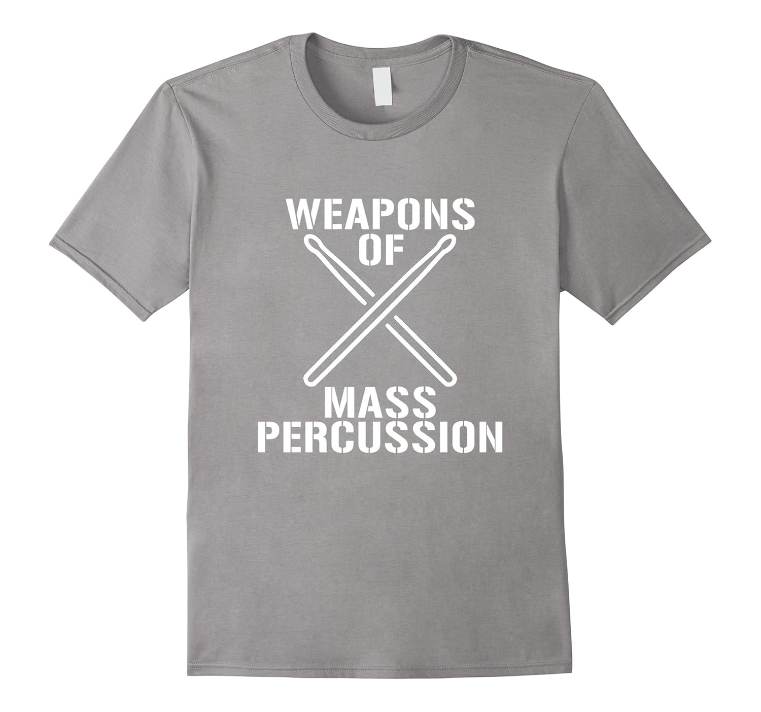 Solid colors: 100% Cotton; Heather Grey: 90% Cotton, 10% Polyester; All Other Heathers: 65% Cotton, 35% Polyester, Imported, Machine wash cold with like colors, dry low heat, Weapons of mass percussion. Great gift for drummers. Cute Cool Sarcastic Novelty Gift Funny Tee Shirts. Lightweight, Classic fit, Double-needle sleeve and bottom hem