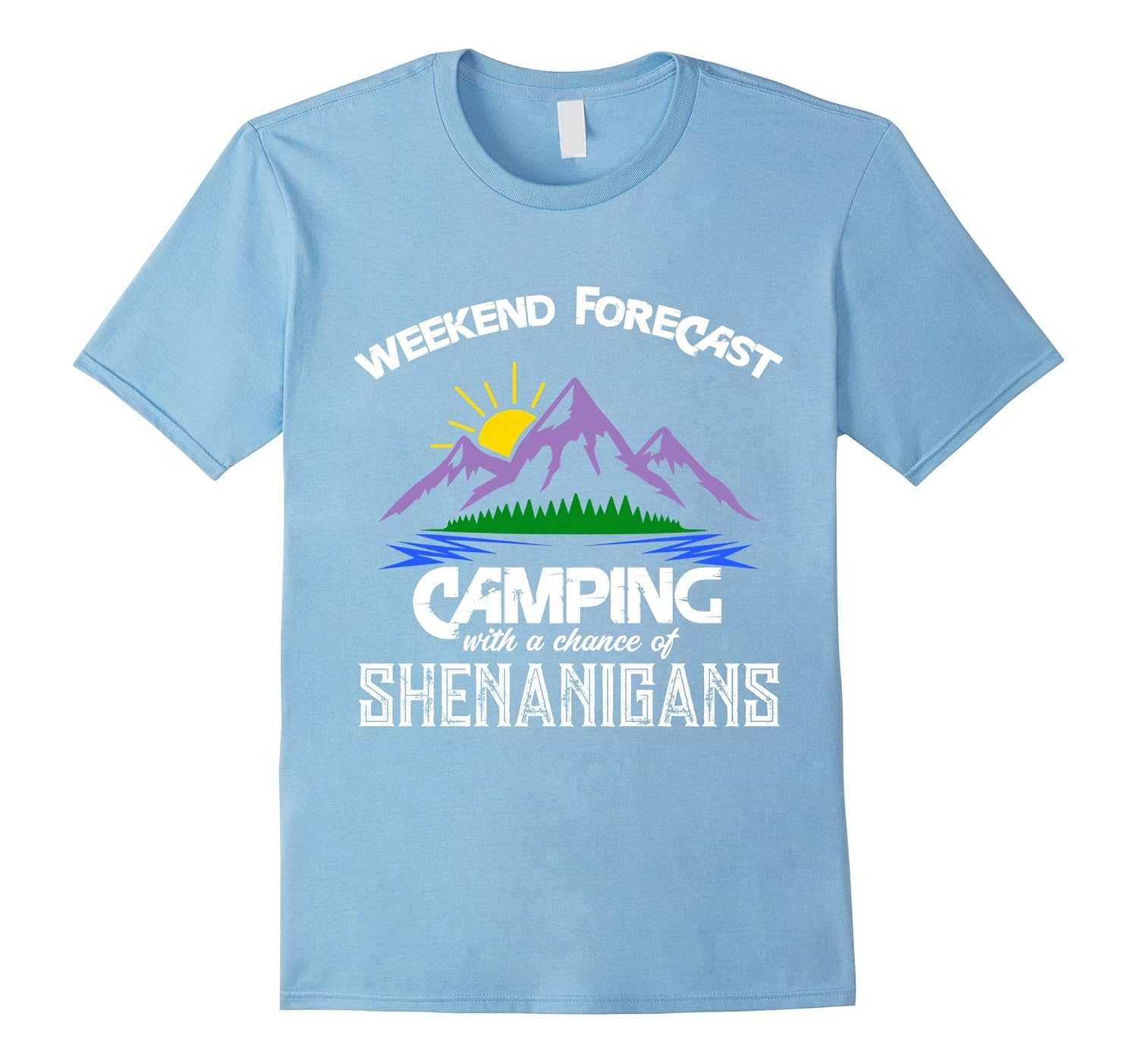 Solid colors: 100% Cotton; Heather Grey: 90% Cotton, 10% Polyester; All Other Heathers: 65% Cotton, 35% Polyester, Imported, Machine wash cold with like colors, dry low heat, Planning on camping. The weather forecast is predicting shenanigans for the weekend! Great funny shirt for any camping fanatics!, Available for men, women and children. Perfect gift for campers and those who love a drink. Great gift for birthdays, graduation, or Christmas. Order a size up for a baggier fit. Lightweight, Classic fit, Double-needle sleeve and bottom hem