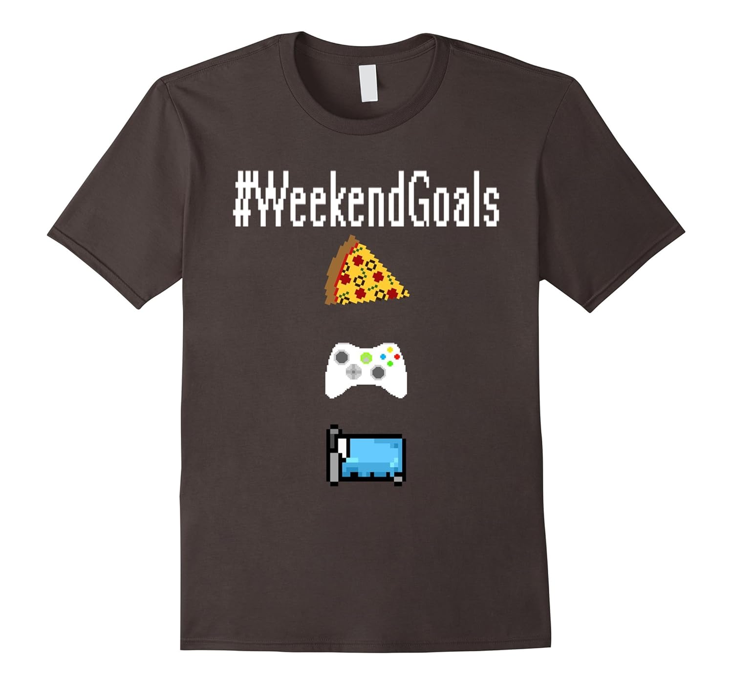 Solid colors: 100% Cotton; Heather Grey: 90% Cotton, 10% Polyester; All Other Heathers: 65% Cotton, 35% Polyester, Imported, Machine wash cold with like colors, dry low heat, Do you enjoy eating pizza and gaming late into the night on weekends. This funny gamer t-shirt is for you. WeekendGoals, Shirts are fitted. For a looser fit, size up. Great gift for men, women, boys, and girls that love gaming, LAN parties, FPS, RPG or online gaming. Lightweight, Classic fit, Double-needle sleeve and bottom hem