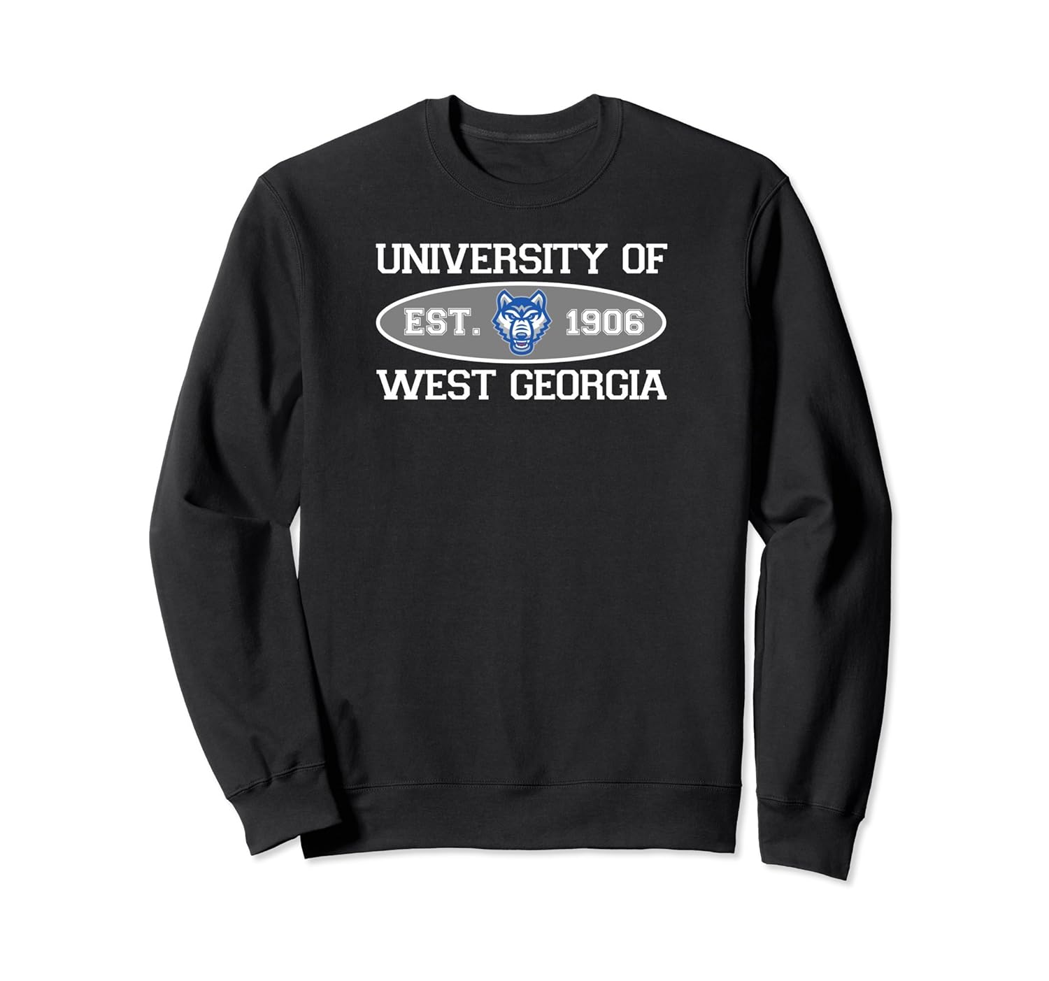 Solid colors: 80% Cotton, 20% Polyester; Heather Grey: 78% Cotton, 22% Poly; Dark Heather: 50% Cotton, 50% Polyester; Imported; Machine wash cold with like colors, dry low heat; Run with the Wolves and Go West in this University of West Georgia Wolves UWG Established 1906 Wolf Head Oval Crewneck Sweatshirt. No matter where you go, you can wear this simple yet stylish UWG sweatshirt with pride and show your support for your school!; Officially Licensed Product. If you are planning to Go West or are an Alumni and Went West this is a great West Georgia crewneck sweatshirt to show your Wolves pride. Get a high five from Wolfie while sporting this awesome sweatshirt.; 8.5 oz, Classic fit, Twill-taped neck