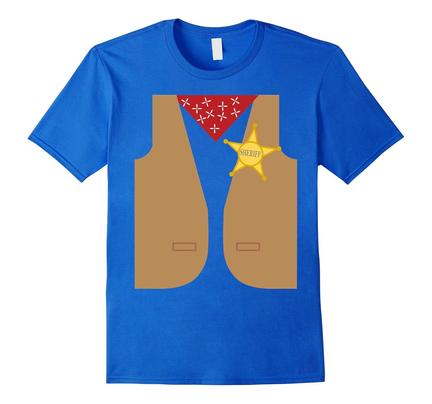 Solid colors: 100% Cotton; Heather Grey: 90% Cotton, 10% Polyester; All Other Heathers: 65% Cotton, 35% Polyester, Imported, Machine wash cold with like colors, dry low heat, This Western Sheriff Costume Tee shirt looks like a Sheriff vest with a badge and belt buckle. Great T-shirt to wear as a simple easy Halloween costume idea. Can also be worn as a Sheriff costume for your favorite costume party or for trick or treating. Great looking Western Sheriff Halloween costume tshirt. Easy Halloween costume idea for a girl or boy. Buy a Sheriff costume for everyone in the family: Mom, Dad, Brother, and Sister! Simple Halloween costume idea for anyone. Lightweight, Classic fit, Double-needle sleeve and bottom hem