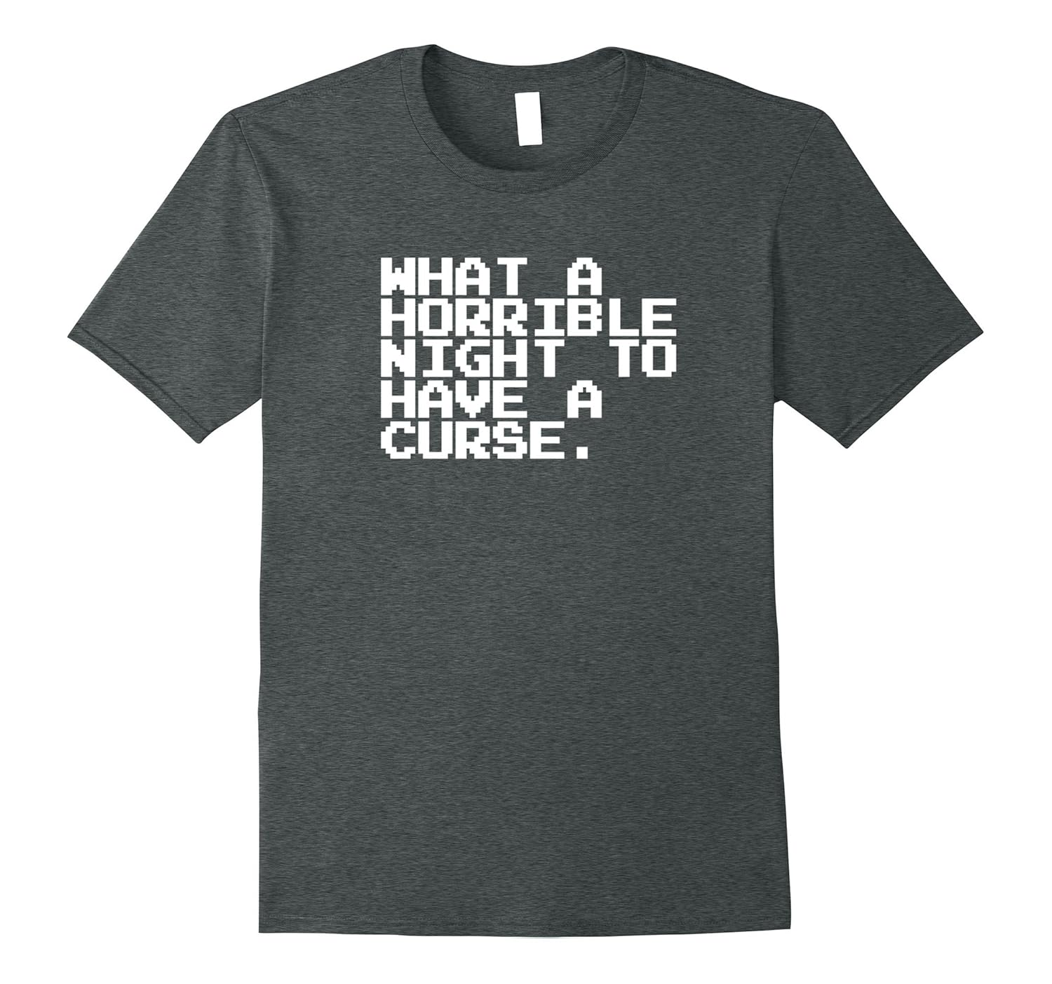 Solid colors: 100% Cotton; Heather Grey: 90% Cotton, 10% Polyester; All Other Heathers: 65% Cotton, 35% Polyester, Imported, Machine wash cold with like colors, dry low heat, What A Horrible Night To Have A Curse Tee, Lightweight, Classic fit, Double-needle sleeve and bottom hem