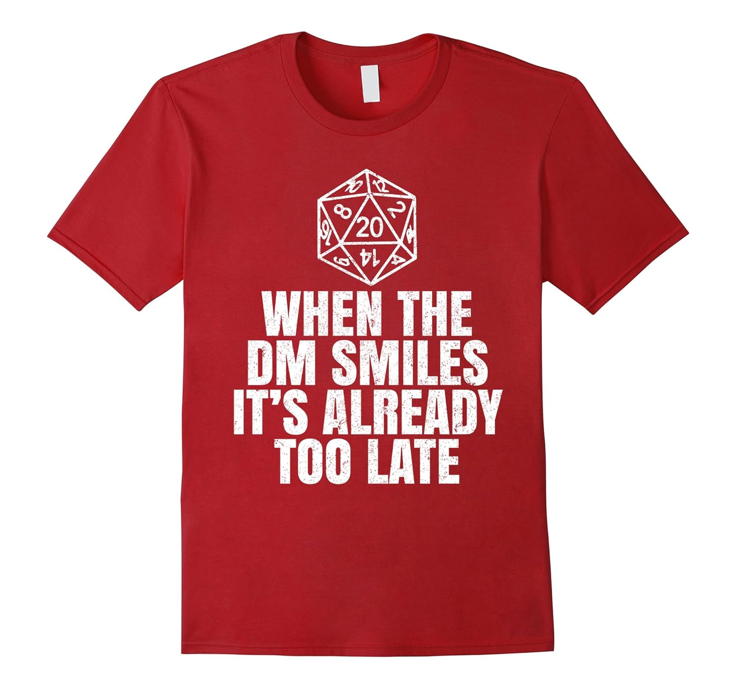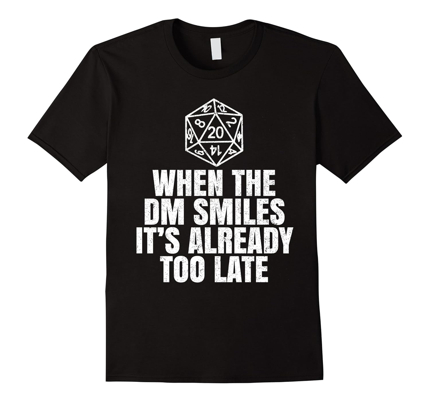 Solid colors: 100% Cotton; Heather Grey: 90% Cotton, 10% Polyester; All Other Heathers: 65% Cotton, 35% Polyester, Imported, Machine wash cold with like colors, dry low heat, 20 sided dice, are the odds in your favor or is it too late in Dungeon or Dragon. Funny humor novelty gift tee shirt for family and friends. T Shirt comes in various colors and sizes. When The DM Smiles It”s Already Too Late Gamer Gift T-Shirts, Lightweight, Classic fit, Double-needle sleeve and bottom hem