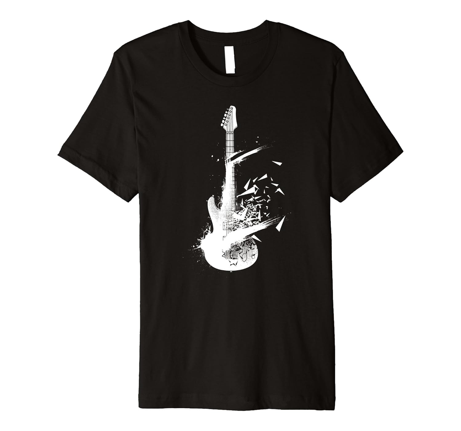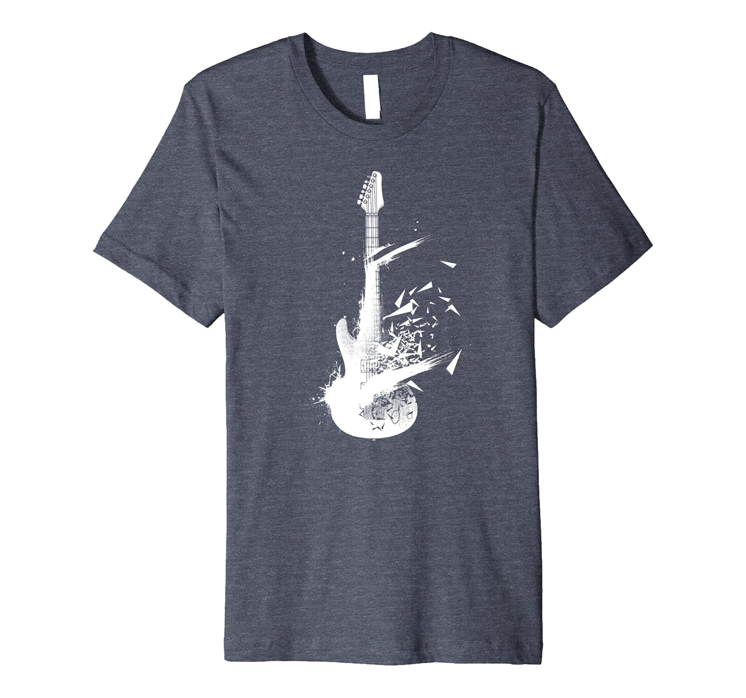 Solid colors: 100% Cotton; Heather Grey: 90% Cotton, 10% Polyester; All Other Heathers: 58% Cotton, 42% Polyester; Imported; Machine wash cold with like colors, dry low heat; Whether a player of rock, country or blues this guitar tee will surely find a home. The perfect guitar shirt for any guitarist or guitar player. An artsy whimsical stylized line drawn look. This shard like geometric design is hip and stylized.; Fit: Slim (consider ordering a larger size for a looser fit); This electric guitar shirt will be right at home with those who love turning their guitar amp up loud. This musician tee will be adored. Whether a professional touring musician or at a local club.; This premium t-shirt is made of lightweight fine jersey fabric