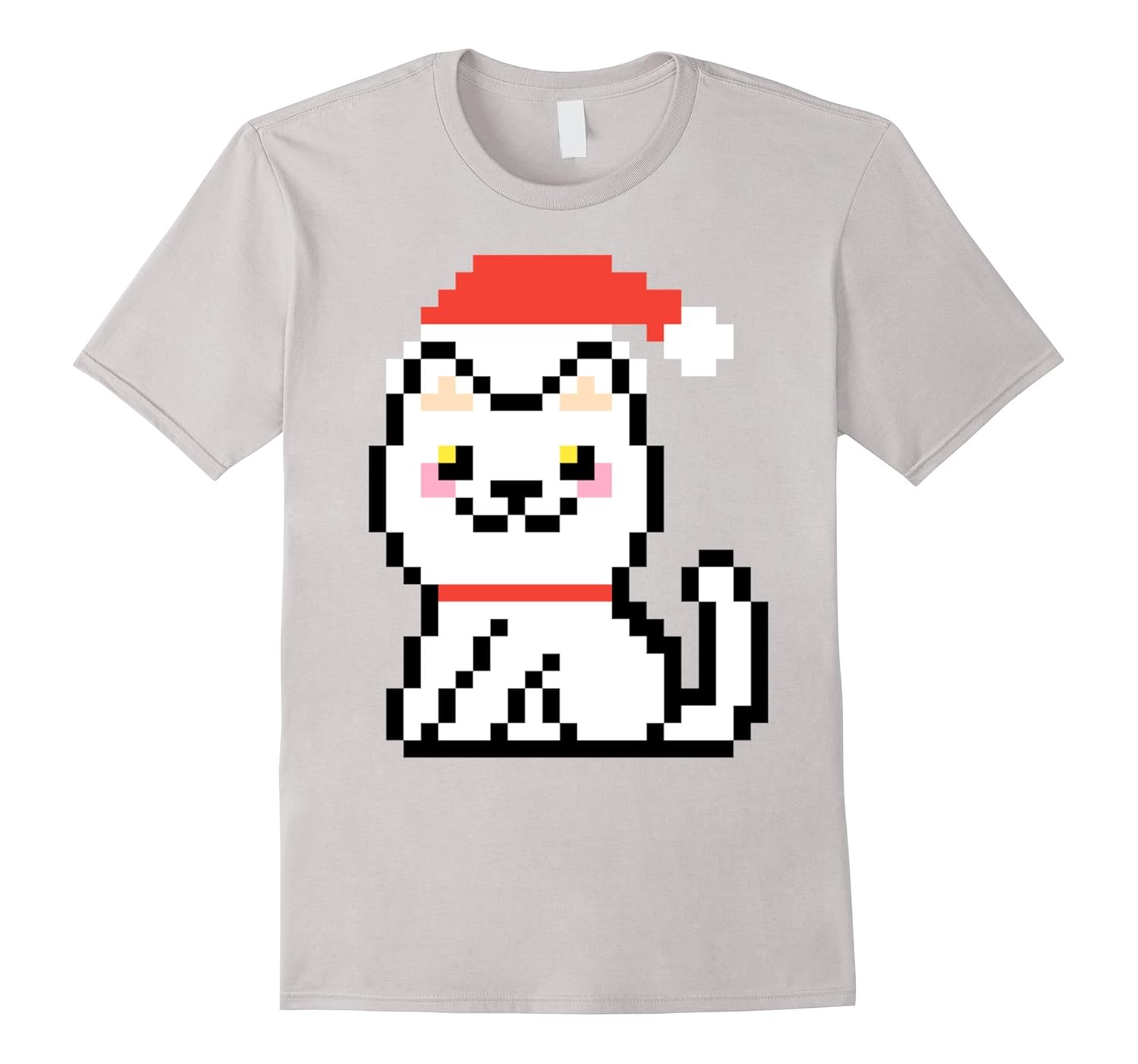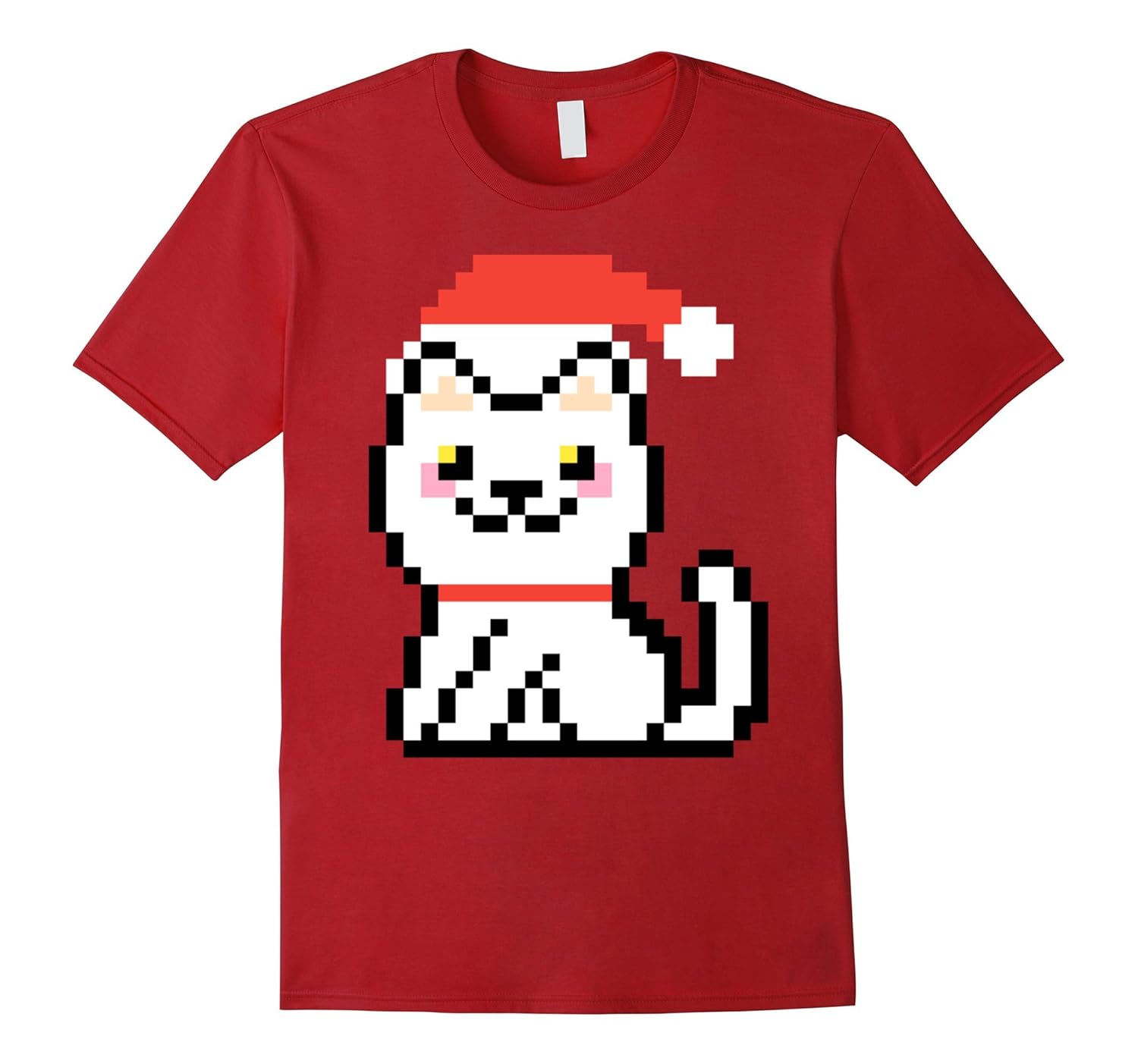 White Kitten Smiling Xmas Retro 8-Bit Pixel Cat Art Shirt-ANZ