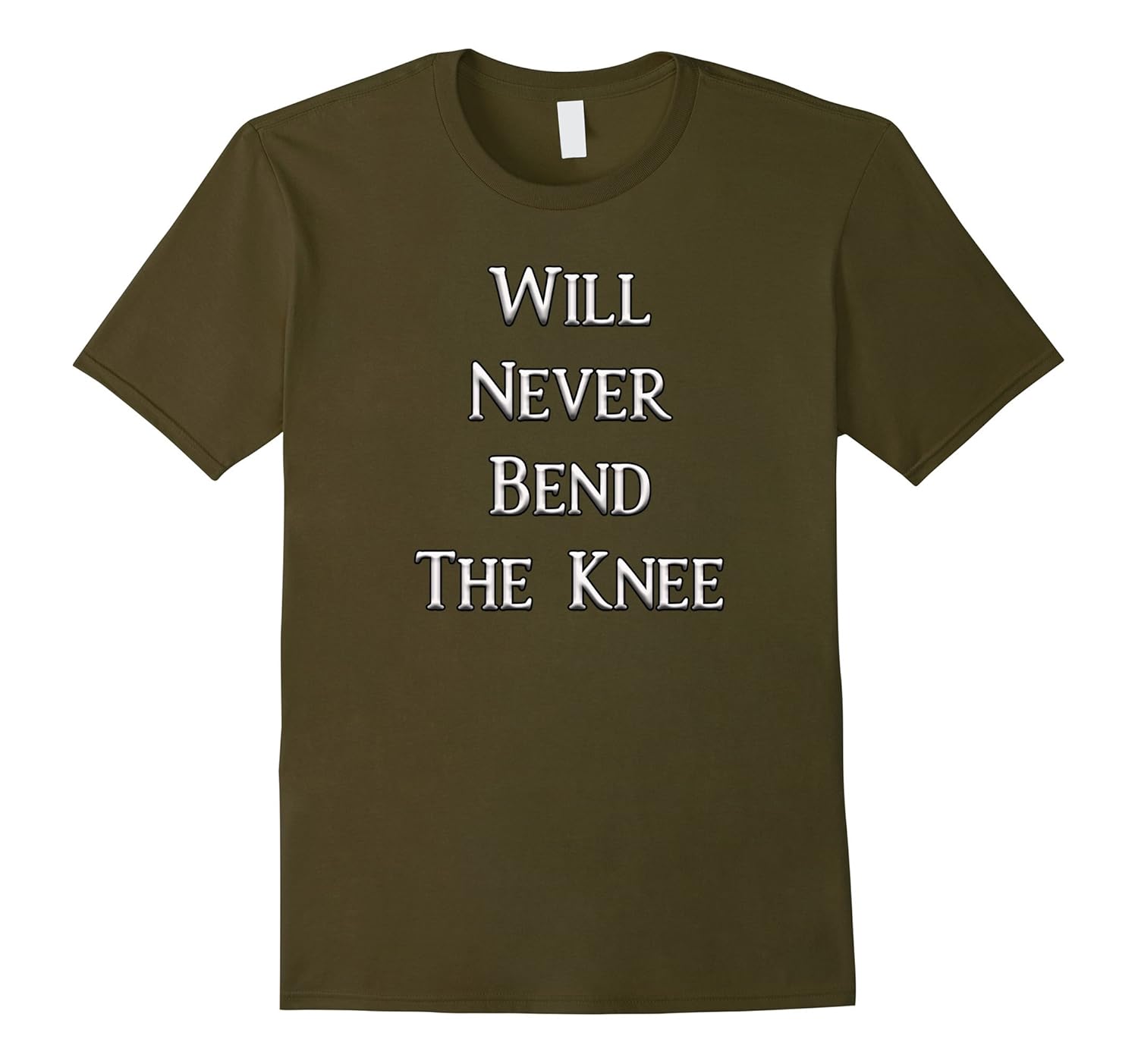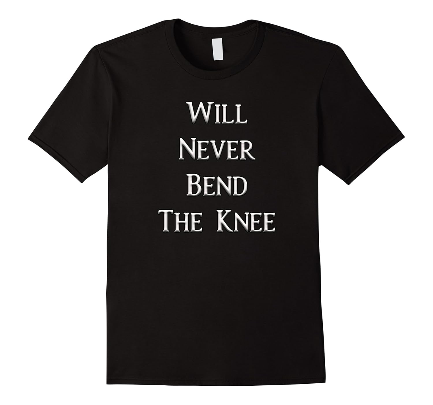 Solid colors: 100% Cotton; Heather Grey: 90% Cotton, 10% Polyester; All Other Heathers: 65% Cotton, 35% Polyester; Imported; Machine wash cold with like colors, dry low heat; New for 2017 – Will Never Bend The Knee Tee Shirt. Wear with pride if you are a free man who bows to No King.; This shirt could be worn as a Halloween Shirt Costumes. Makes a great gift for Birthdays, Christmas or Halloween. Sizes tend to run small, order up one size for a looser fit; Lightweight, Classic fit, Double-needle sleeve and bottom hem