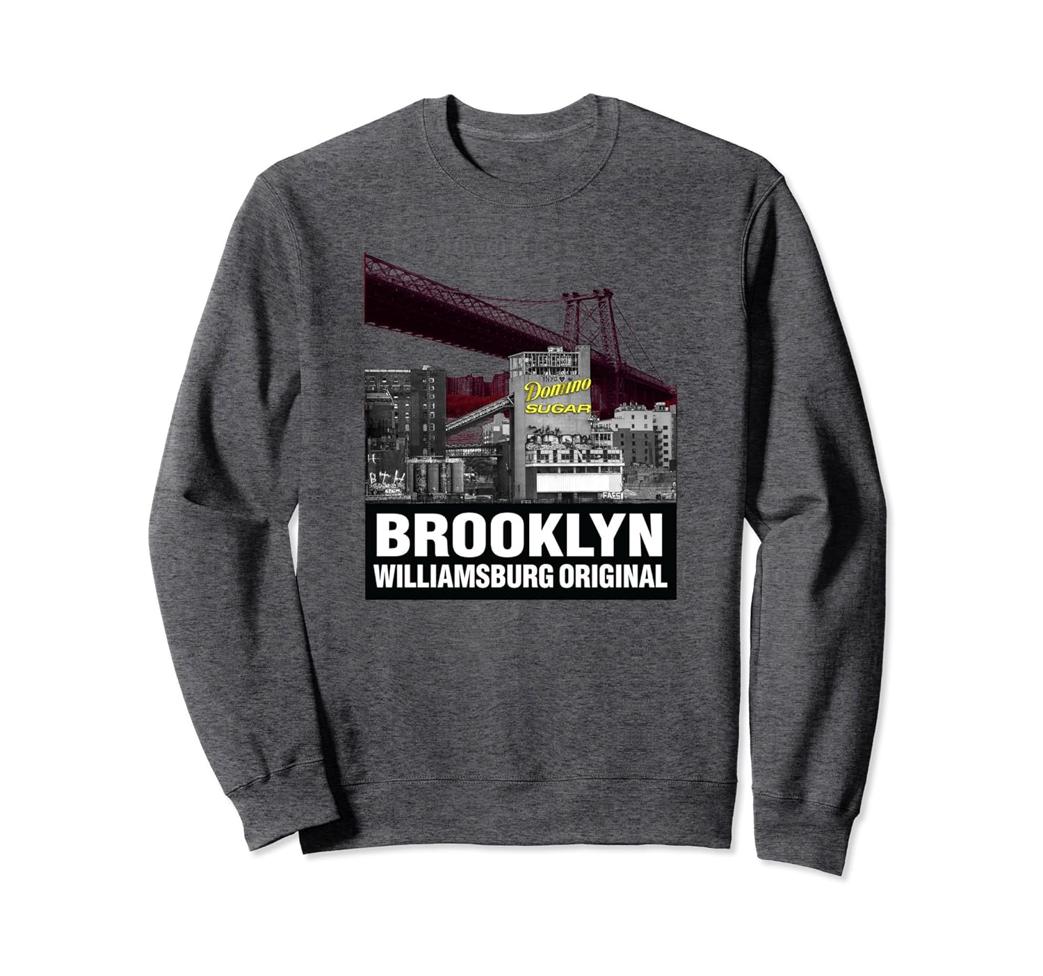 Solid colors: 80% Cotton, 20% Polyester; Heather Grey: 78% Cotton, 22% Poly; Dark Heather: 50% Cotton, 50% Polyester; Imported; Machine wash cold with like colors, dry low heat; Brooklyn Neighborhood themed shirts, Artist Created Logo; Brooklyn, Williamsburg, bridge, urban, neighborhood, waterfront; 8.5 oz, Classic fit, Twill-taped neck