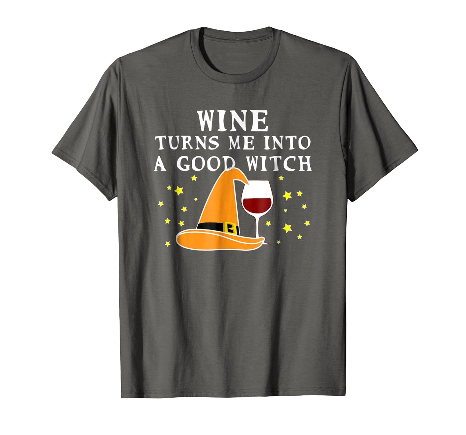 Solid colors: 100% Cotton; Heather Grey: 90% Cotton, 10% Polyester; All Other Heathers: 50% Cotton, 50% Polyester; Imported; Machine wash cold with like colors, dry low heat; Wine Turns Me Into A Good Witch. Funny Halloween quote t-shirt for women. Wear trick or treating, as your Halloween party shirt, or for passing out candy. Perfect Halloween costume for wine drinkers. Cute Halloween shirt for women who love drinking wine.; Halloween tee for wine lovers. Cute witch hat and wine glass Halloween tee for women.; Lightweight, Classic fit, Double-needle sleeve and bottom hem