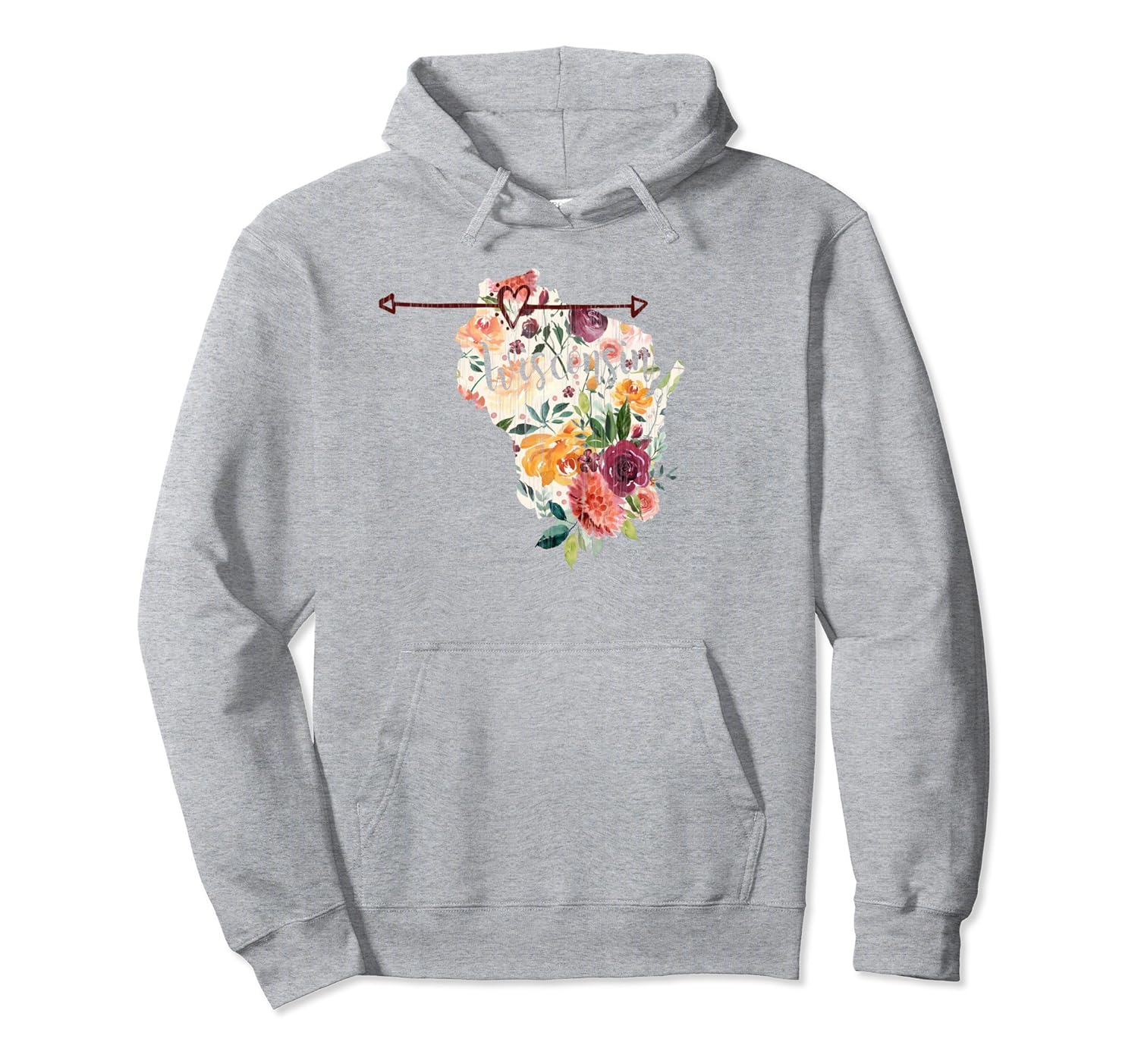 Wisconsin Watercolor Flowers Distressed Hoodie Sweatshirt-anz