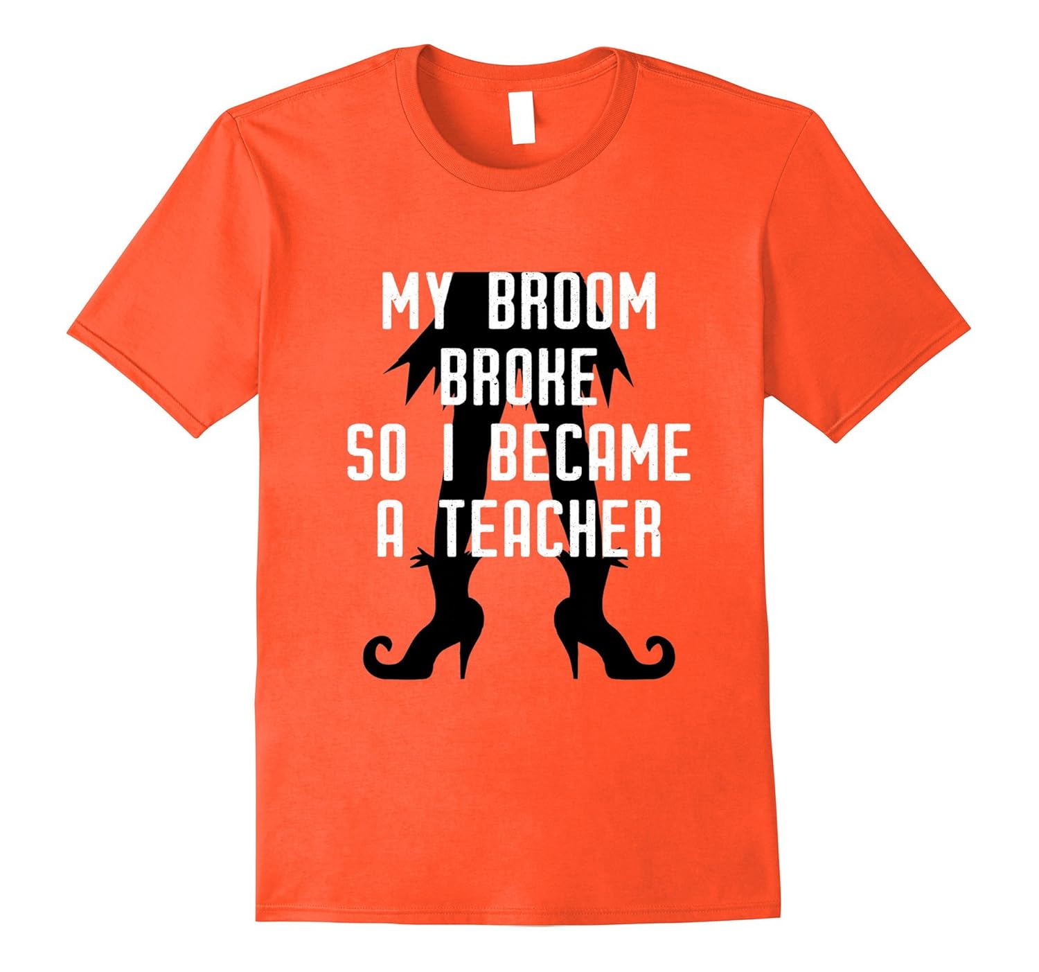 Solid colors: 100% Cotton; Heather Grey: 90% Cotton, 10% Polyester; All Other Heathers: 65% Cotton, 35% Polyester; Imported; Machine wash cold with like colors, dry low heat; Funny and cute teachers teaching t shirt saying my broom broke so I became a teacher with a witch graphic makes a cool gift for teachers, staff, assistant, substitute of pre-k, preschool, tk, kindergarten, elementary school, high school, middle school.; Gift idea for Halloween event, classroom open house, 1st day of school, last day of school, graduation, scary movie night, horror game, class activities, skeleton skull or ghost theme party, birthday, campout, back to school, field trip, appreciation week.; Lightweight, Classic fit, Double-needle sleeve and bottom hem
