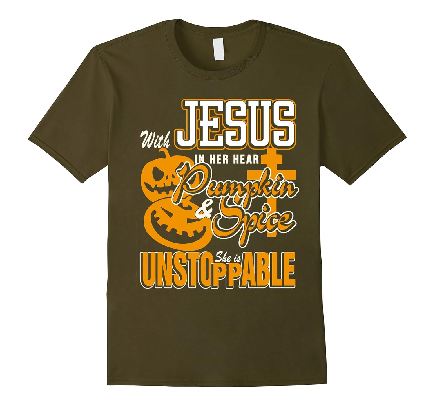 Solid colors: 100% Cotton; Heather Grey: 90% Cotton, 10% Polyester; All Other Heathers: 65% Cotton, 35% Polyester, Imported, Machine wash cold with like colors, dry low heat, With Jesus In Her Heart And Pumpkin spice T shirt, With Jesus In Her Heart And Pumpkin Spice In Her Hand, She Is Unstoppable. Lightweight, Classic fit, Double-needle sleeve and bottom hem
