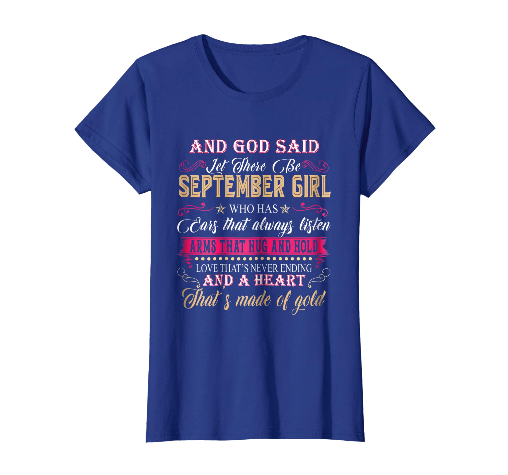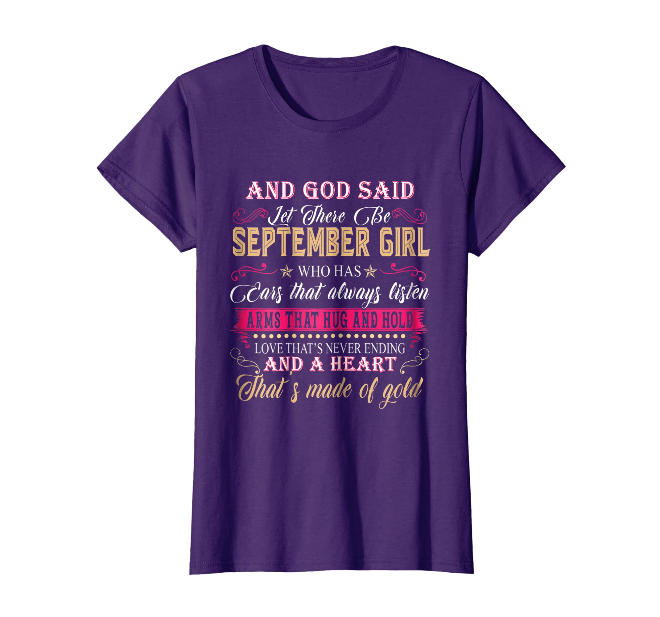 Solid colors: 100% Cotton; Heather Grey: 90% Cotton, 10% Polyester; All Other Heathers: 50% Cotton, 50% Polyester; Imported; Machine wash cold with like colors, dry low heat; And God Said Let There Be September Girl Who Has Ears That Always Listen, Arms That Hug And Hold, Love Thats Never Ending And A Heart Thats Made Of Gold Shirt. September Girl Shirt, September Girl Birthday Gift, September Qoute Shirt.; Perfect For Black Girls Women Who Was Born In September . Awesome, Fun Sarcastic Quote Gag Gift Great For Any Holiday Such As July 4Th, Christmas, Birthday, Fathers Day, Mothers Day, Retirement, Anniversary, Graduation, St. Patricks Day Or Presen.; Lightweight, Classic fit, Double-needle sleeve and bottom hem