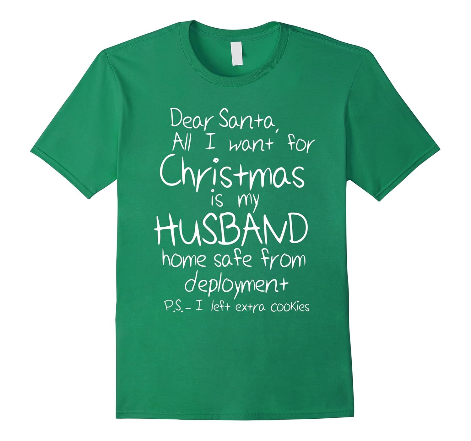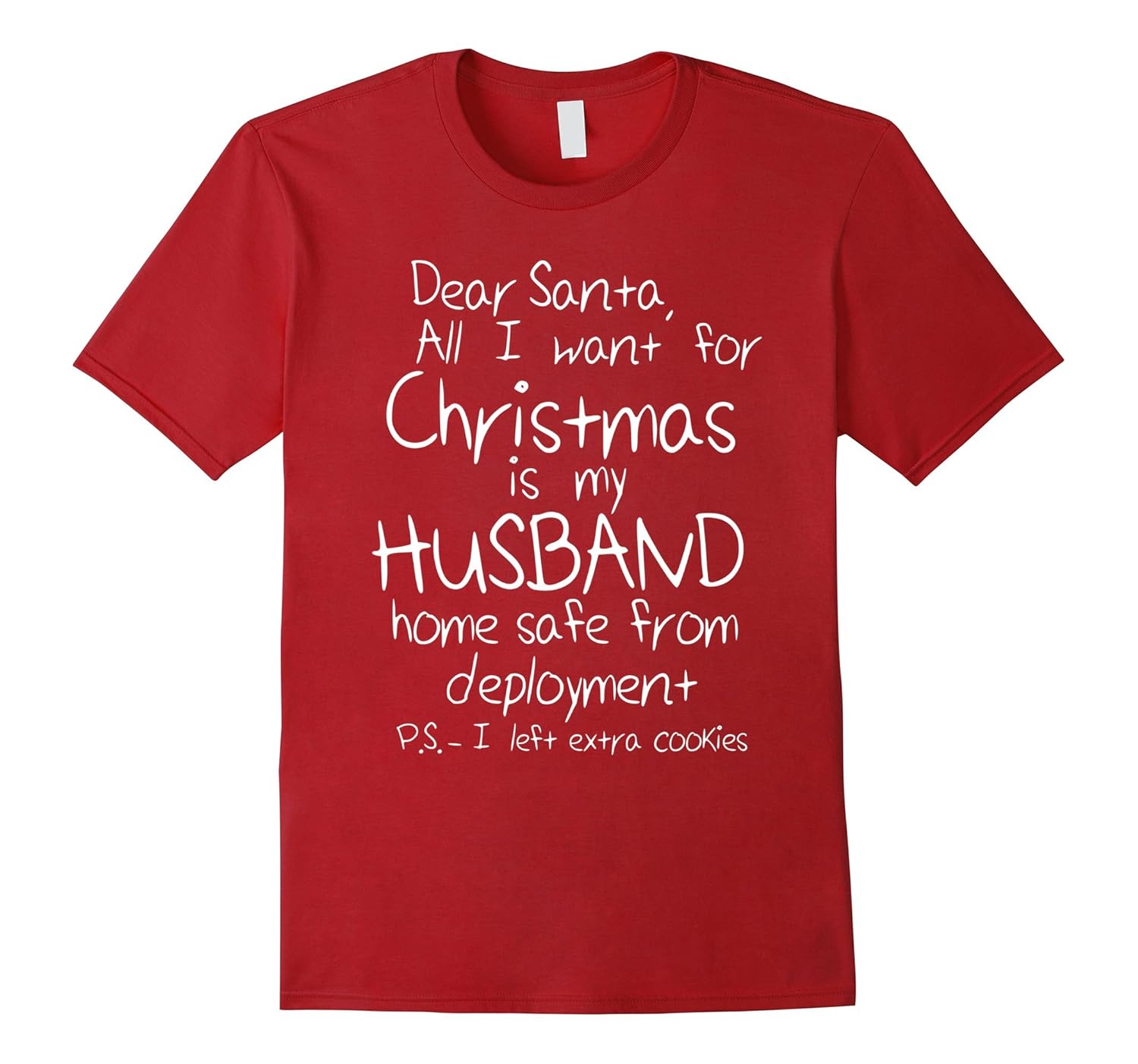 Solid colors: 100% Cotton; Heather Grey: 90% Cotton, 10% Polyester; All Other Heathers: 65% Cotton, 35% Polyester, Imported, Machine wash cold with like colors, dry low heat, Nothing would make the holidays more joyful than for friends and family deployed overseas to be able to take leave and be home safe. Dear Santa, All I want for Christmas is my Husband Home Safe From Deployment. Perfect for the wives who dearly miss their soldier spouse and hope he can make it home for Christmas safely. Lightweight, Classic fit, Double-needle sleeve and bottom hem