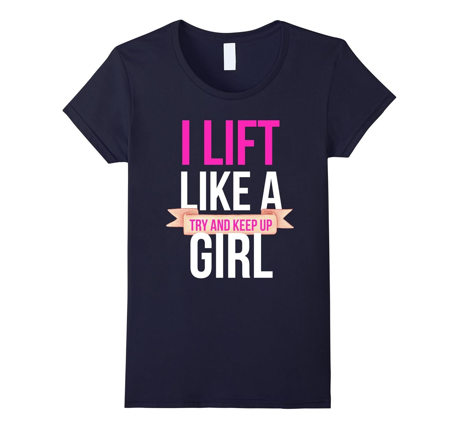 Solid colors: 100% Cotton; Heather Grey: 90% Cotton, 10% Polyester; All Other Heathers: 65% Cotton, 35% Polyester, Imported, Machine wash cold with like colors, dry low heat, Funny I Lift Like A Girl Try And Keep Up Weightlifting Shirt, Funny Girl Weightlifter Shirt, Lightweight, Classic fit, Double-needle sleeve and bottom hem