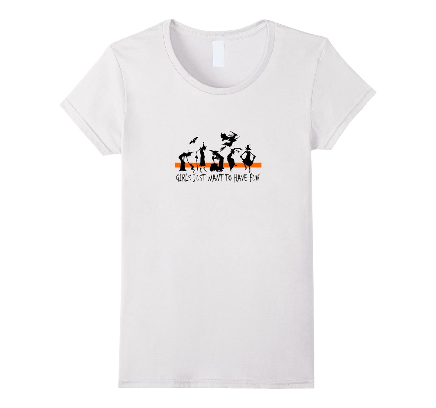 Solid colors: 100% Cotton; Heather Grey: 90% Cotton, 10% Polyester; All Other Heathers: 50% Cotton, 50% Polyester; Imported; Machine wash cold with like colors, dry low heat; Girls Just Want To Have Fun – Halloween Shirts For Womens; Lightweight, Classic fit, Double-needle sleeve and bottom hem