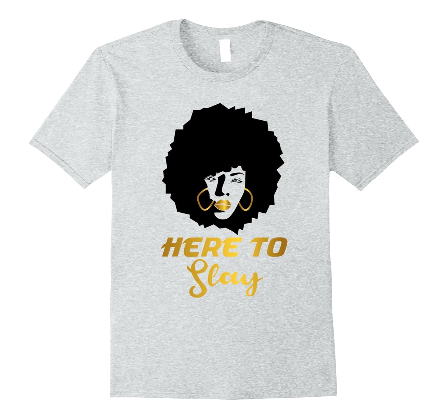 Solid colors: 100% Cotton; Heather Grey: 90% Cotton, 10% Polyester; All Other Heathers: 65% Cotton, 35% Polyester, Imported, Machine wash cold with like colors, dry low heat, Show your uniqueness and slay all day faux printed gold in this fashionable Here to Slay TShirt. For a loose fit please order a size up. Feel free to wake pray and slay in your Here to Slay tee shirt which doubles as a great gift for a friend or loved, for Valentines, Anniversary, Birthday, Christmas, Hanukkah, Thanksgiving etc plus perfect to treat yourself. Lightweight, Classic fit, Double-needle sleeve and bottom hem