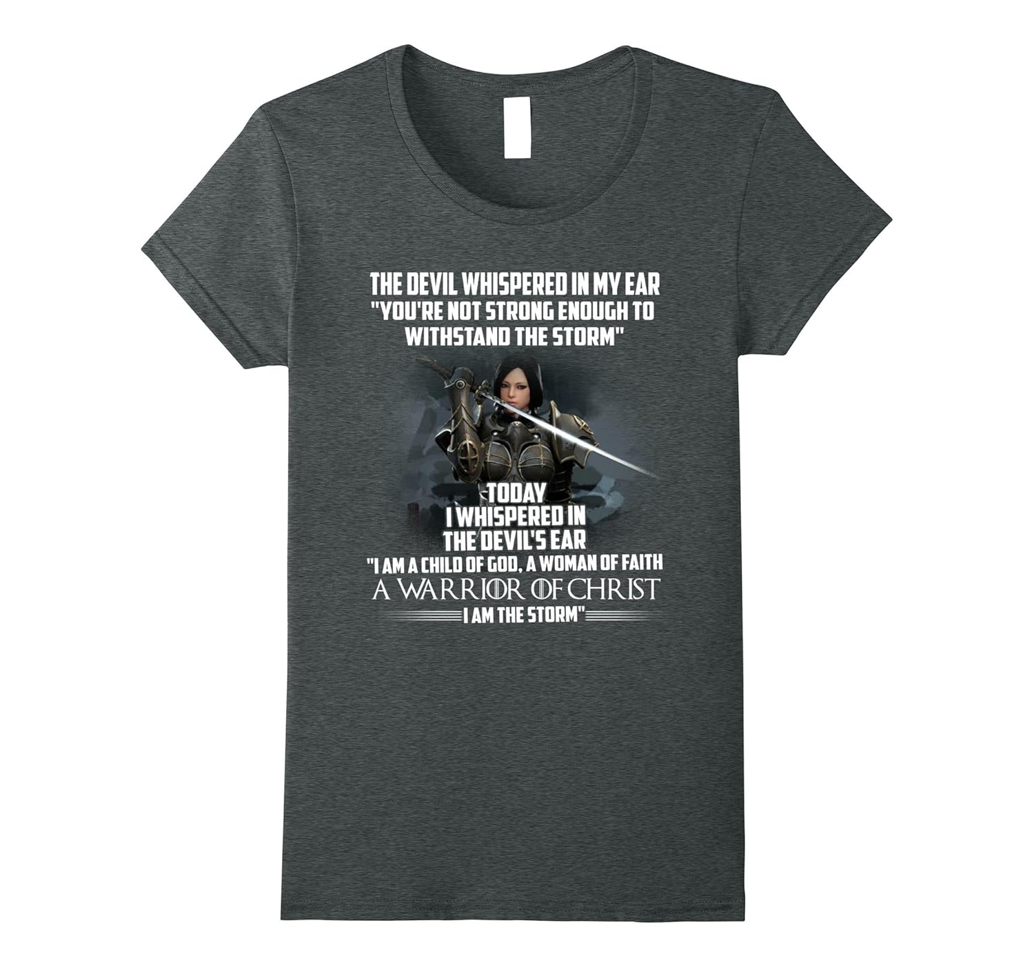 Solid colors: 100% Cotton; Heather Grey: 90% Cotton, 10% Polyester; All Other Heathers: 65% Cotton, 35% Polyester, Imported, Machine wash cold with like colors, dry low heat, The Devil Whispered In My Ear “You”re Not Strong Enough To Withstand The Storm” To Day Whispered In The Devil”s Ear “I Am A Child Of God A Woman Of Faith A Warrior Of Christ I Am The Storm”, Perfect T-Shirt for anyone who trust in God, Jesus, Christian, Lord. Christian gifts, Christian shirt, Lightweight, Classic fit, Double-needle sleeve and bottom hem