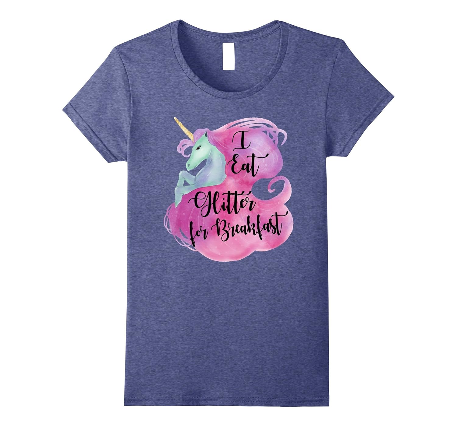 Solid colors: 100% Cotton; Heather Grey: 90% Cotton, 10% Polyester; All Other Heathers: 65% Cotton, 35% Polyester, Imported, Machine wash cold with like colors, dry low heat, I Eat Glitter for Breakfast – Rainbow Unicorn Shirt. Funny Vintage design. Funny Unicorn Shirt makes a great gift for Women and girls. Lightweight, Classic fit, Double-needle sleeve and bottom hem