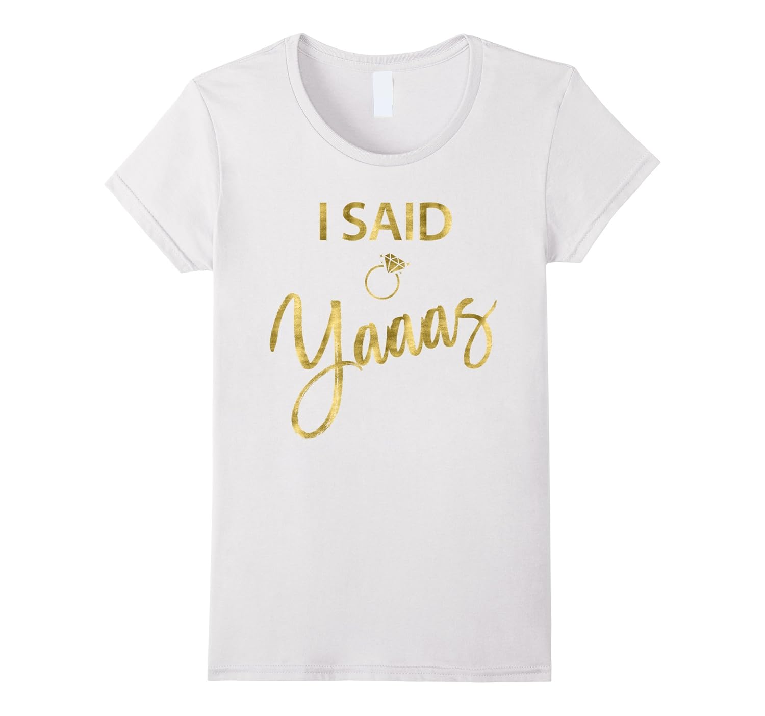 Solid colors: 100% Cotton; Heather Grey: 90% Cotton, 10% Polyester; All Other Heathers: 65% Cotton, 35% Polyester, Imported, Machine wash cold with like colors, dry low heat, Bride shirt with ring and faux gold foil (look like, printed on shirt as an image) text I Said Yaaas. This shirt is perfect for Bachelorette party or Bridal shower or just a fun shirt for any other occasion. GOLD, FOIL, IMITATION, FAUX, bachelorette party shirts, bachelorette party stuff, bride shirt, bride shirts, bachelorette party t-shirt, hen party,, Lightweight, Classic fit, Double-needle sleeve and bottom hem