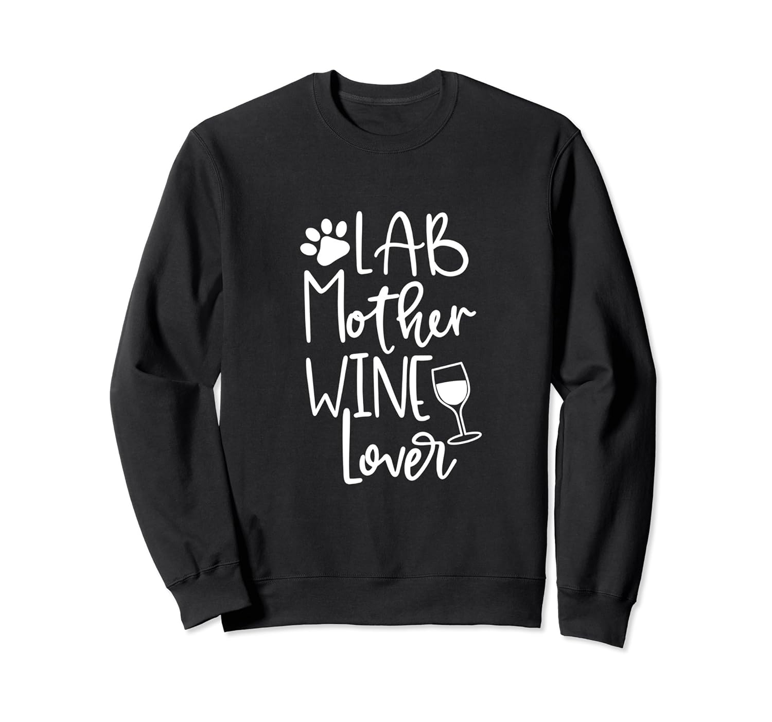 Solid colors: 80% Cotton, 20% Polyester; Heather Grey: 78% Cotton, 22% Poly; Dark Heather: 50% Cotton, 50% Polyester; Imported; Machine wash cold with like colors, dry low heat; Lab Mother Wine Lover Graphic Sweatshirts are great for Chocolate, Black, or Yellow Labrador Dog Moms who love Wine and dog paws!; Order This awesome Dog Wine gift for Women, Sisters, Moms, Aunts, Cousins, Grandmas and Friends.; 8.5 oz, Classic fit, Twill-taped neck