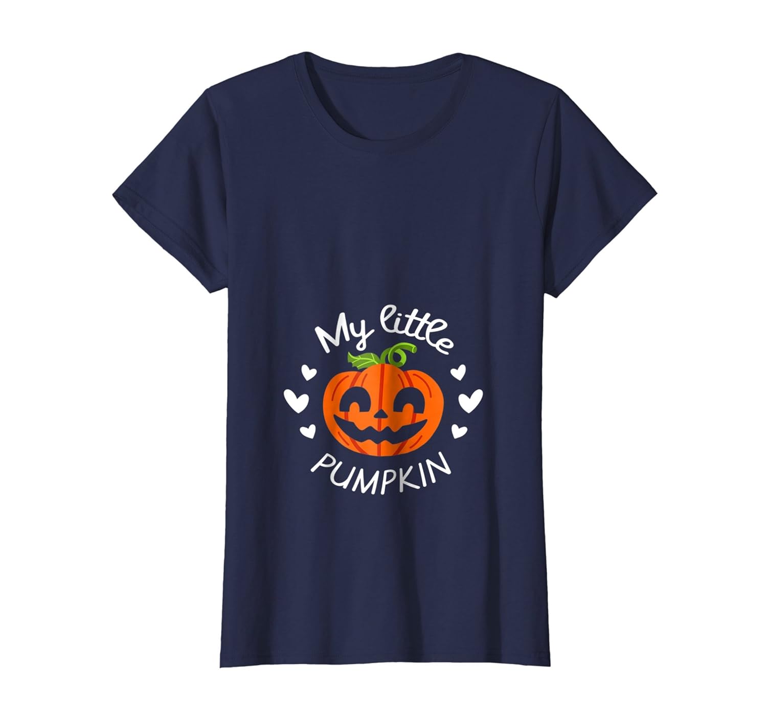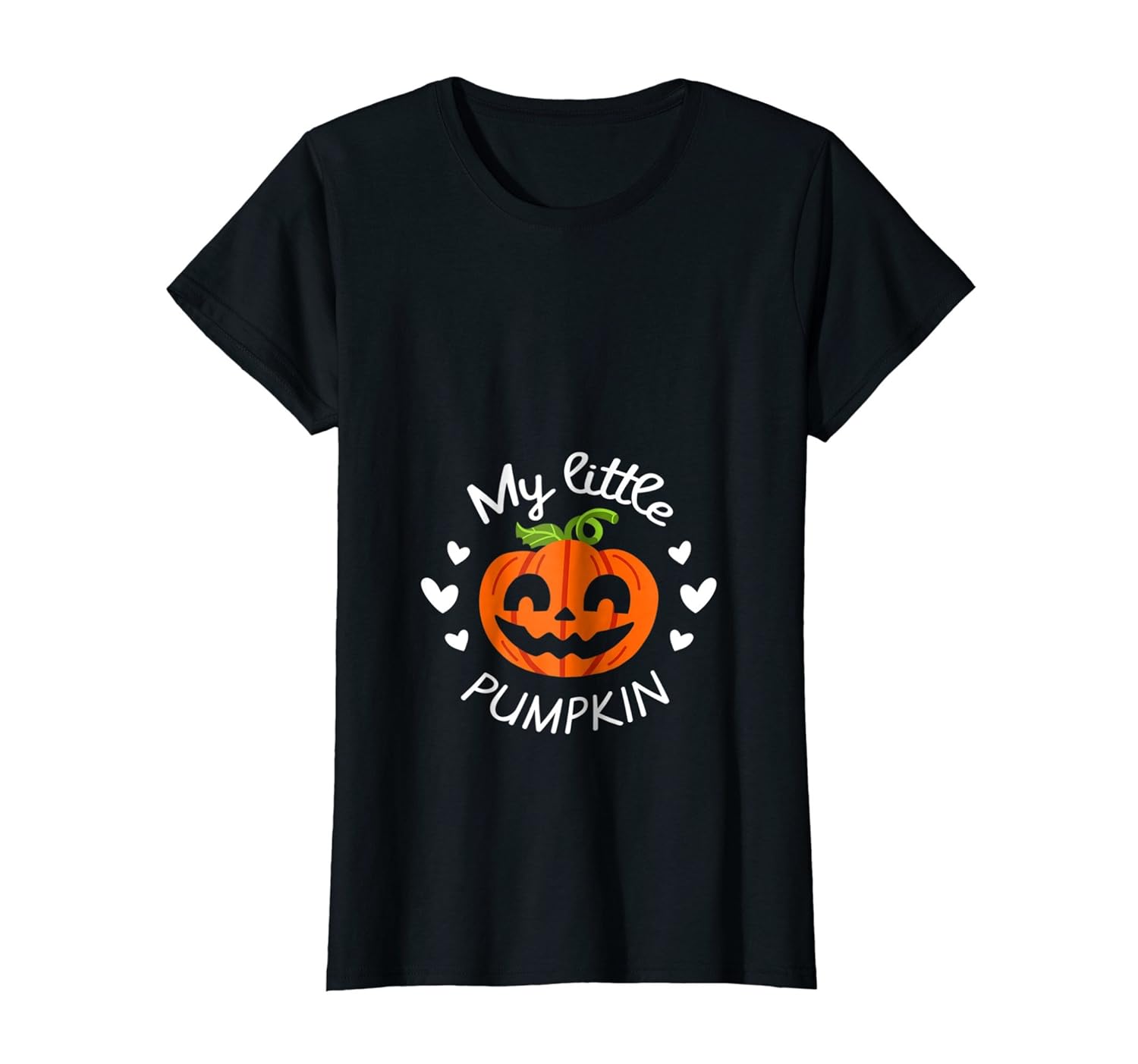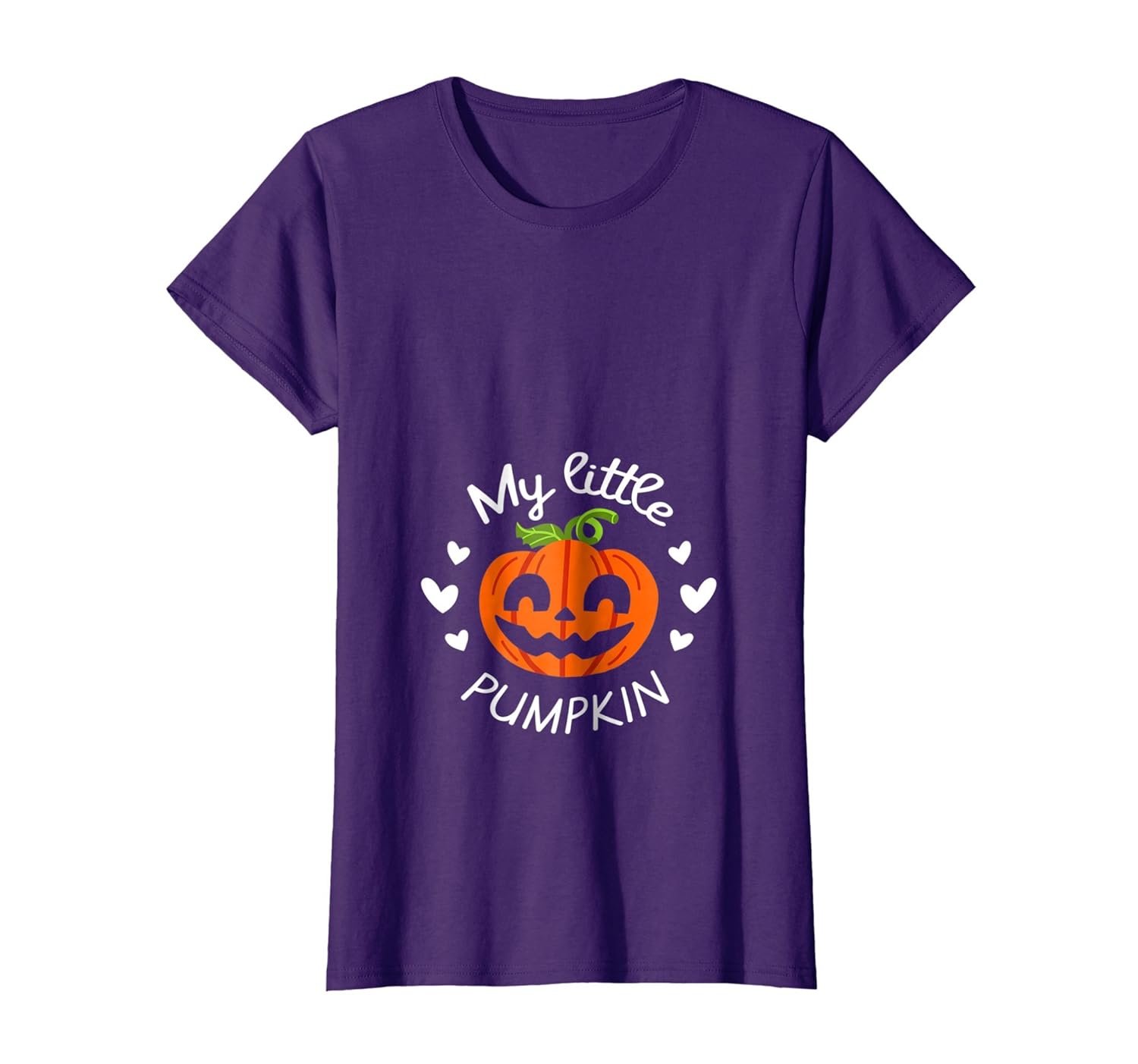 Solid colors: 100% Cotton; Heather Grey: 90% Cotton, 10% Polyester; All Other Heathers: 50% Cotton, 50% Polyester; Imported; Machine wash cold with like colors, dry low heat; Are you a mom to be this Halloween? Youll love this cute my little pumpkin shirt. Perfect t shirt for new baby or funny way to announce I am pregnant Great costume for Halloween themed party, baby shower or trick or treating with your kids!; Cute gift idea for pregnant mom, sister, daughter or friend who also love Halloween, pumpkins, spooky, scary, and creepy stuff! This funny shirt is perfect for any expecting mother! Put on your costume and melt hearts with this adorable tee!; Lightweight, Classic fit, Double-needle sleeve and bottom hem