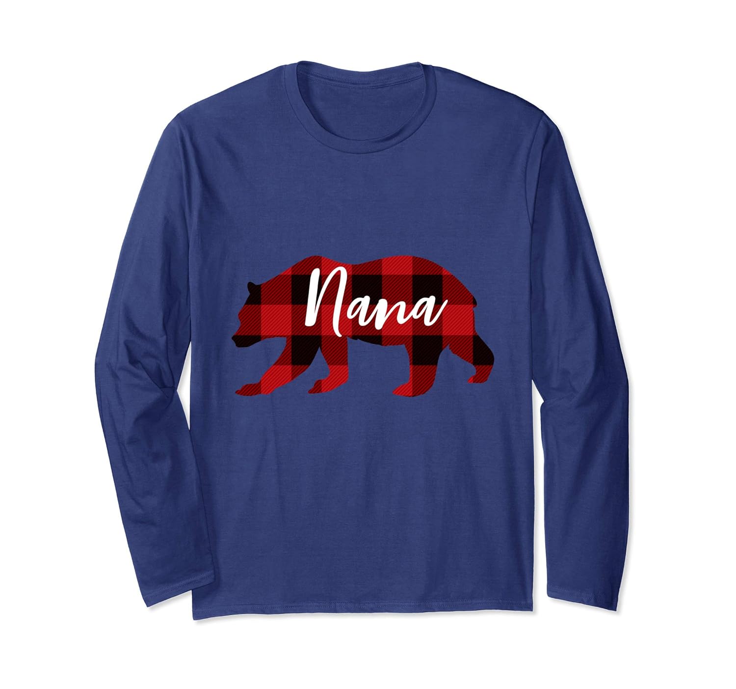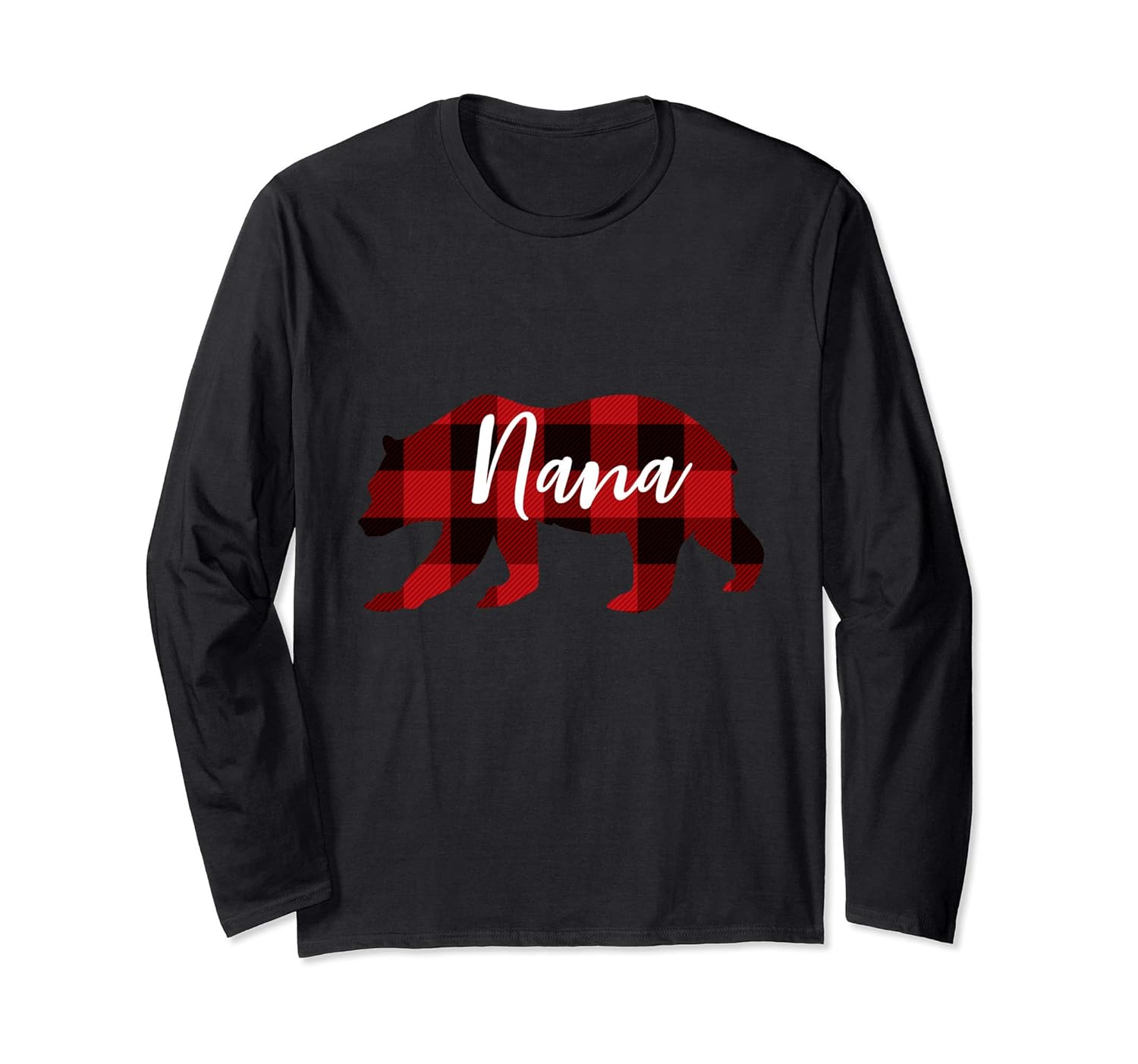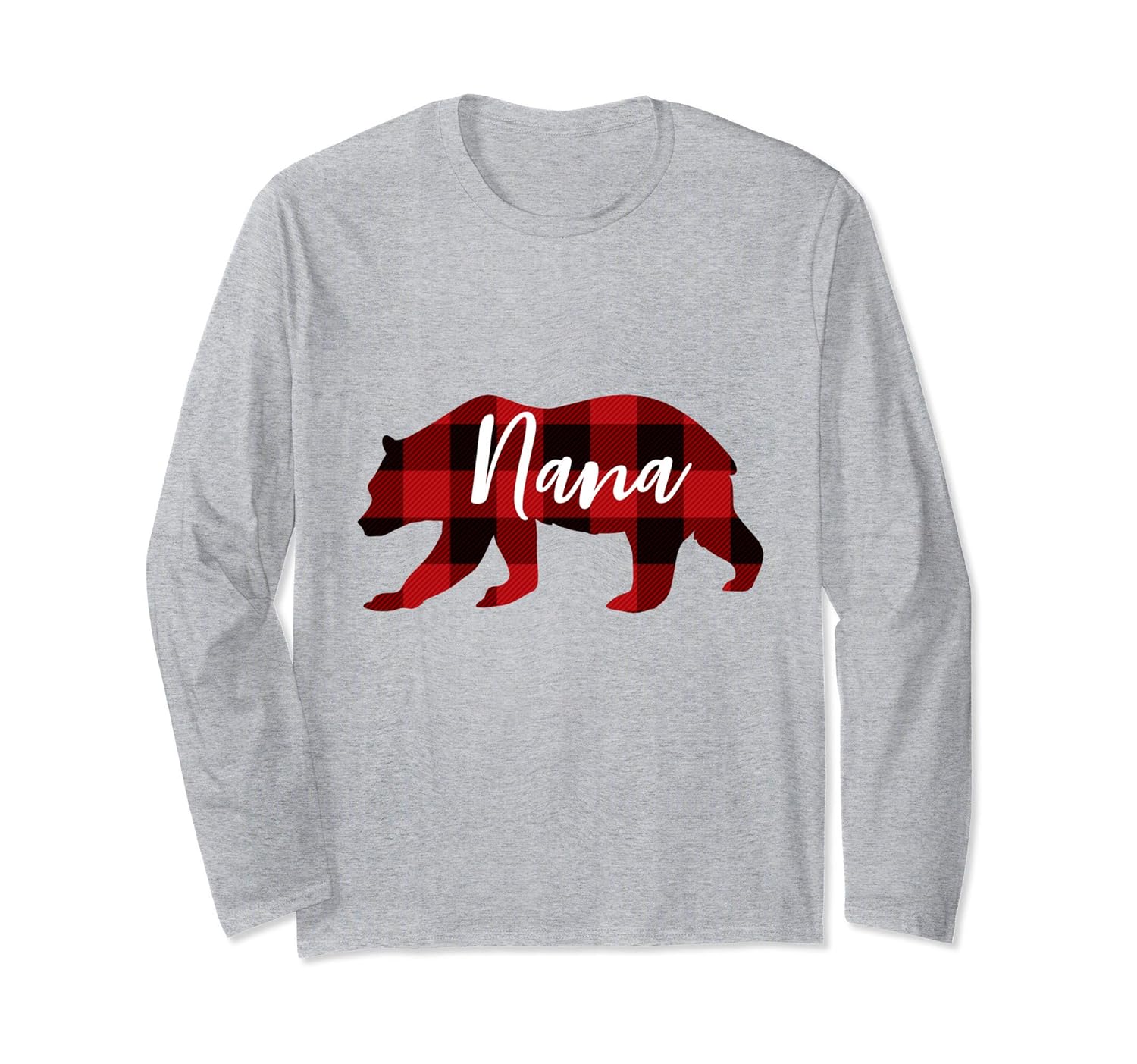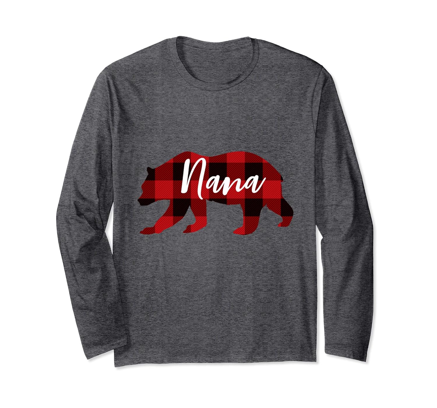 Solid colors: 100% Cotton; Heather Grey: 90% Cotton, 10% Polyester; All Other Heathers: 50% Cotton, 50% Polyester; Imported; Machine wash cold with like colors, dry low heat; Perfect long-sleeve t-shirt for your grandma, nana, grandmother, granny, who likes bears and plaid designs.; Family Christmas Pajama Shirts for the whole family.Pair with your favorite flannel pants. Nana Bear Grandma Christmas Plaid Shirt. Ideal gift for Christmas, Birthday, grandmother gift ideas or any other gift giving occasion.; Lightweight, Classic fit, Double-needle sleeve and bottom hem