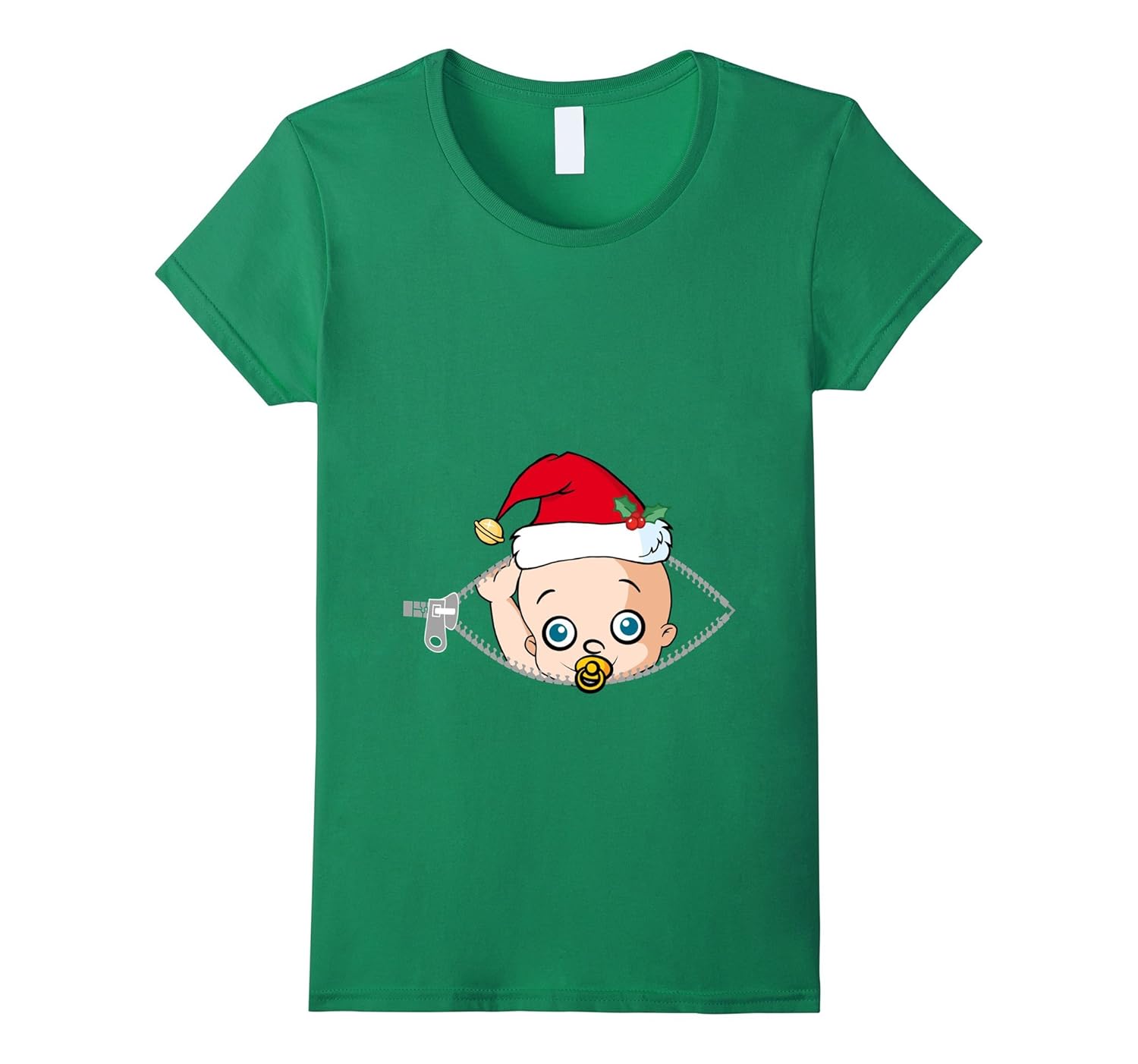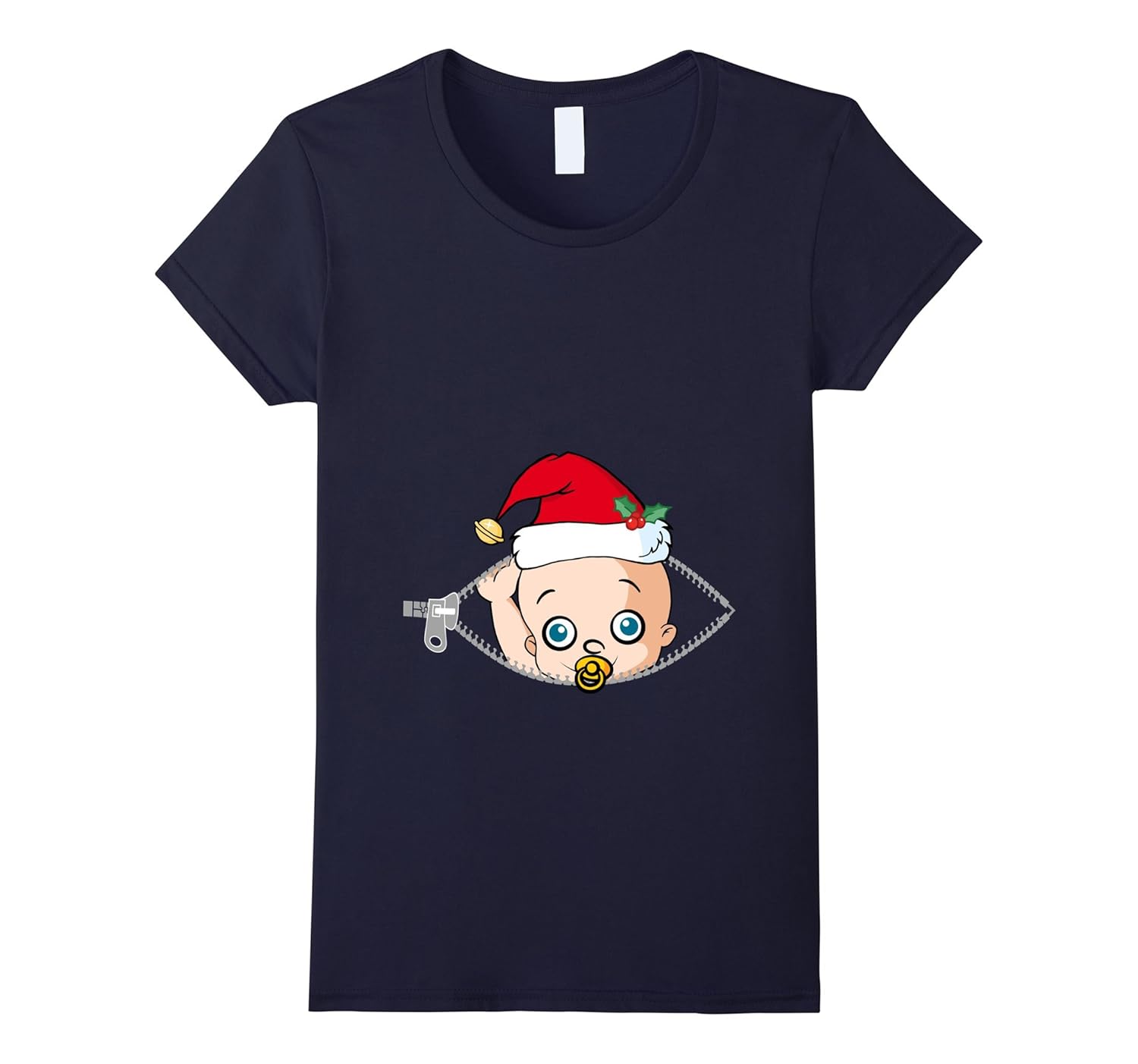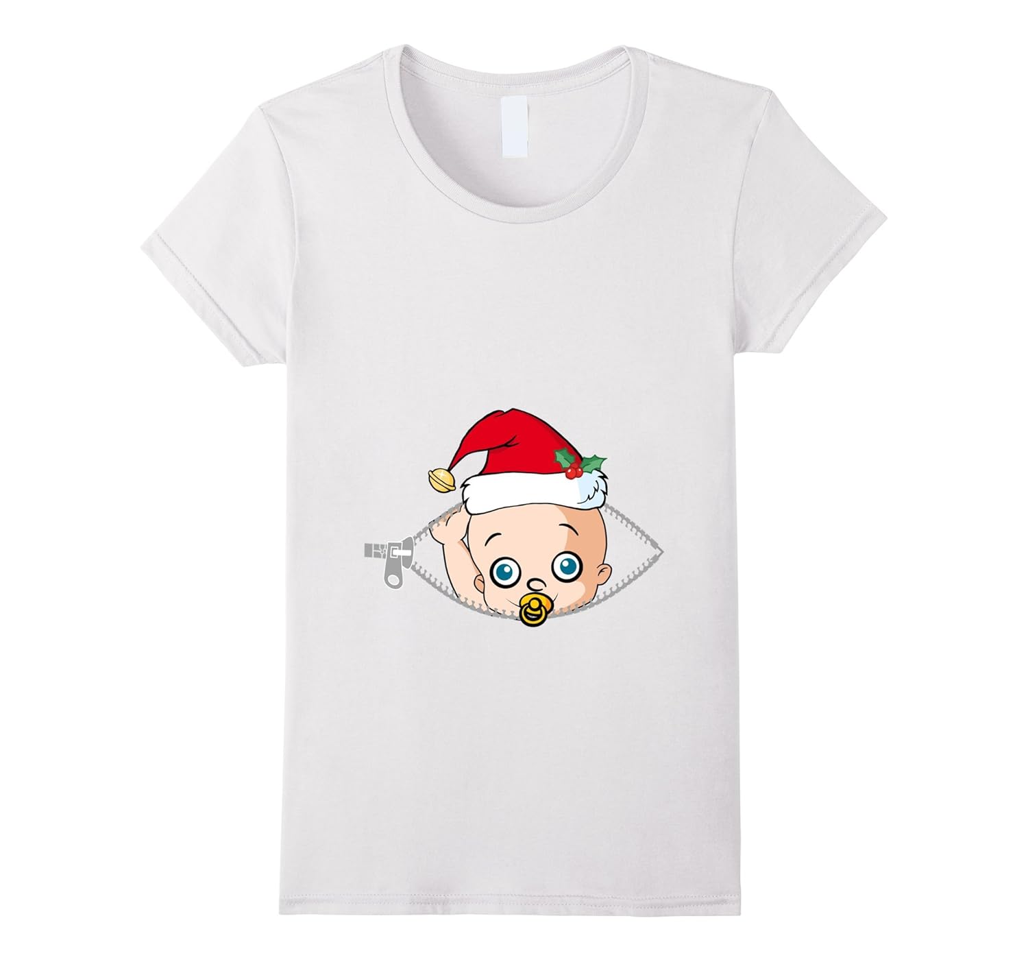 Womens Peeking Baby Santa Christmas Pregnancy Maternity T-shirt-ANZ