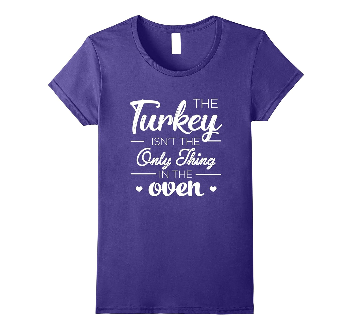 Solid colors: 100% Cotton; Heather Grey: 90% Cotton, 10% Polyester; All Other Heathers: 65% Cotton, 35% Polyester, Imported, Machine wash cold with like colors, dry low heat, Womens Thanksgiving Shirt Pregnancy Announcement for Women, The Turkey Isn”t the Only Thing in the Oven Baby Announcement November Thanksgiving Baby Reveal, Lightweight, Classic fit, Double-needle sleeve and bottom hem