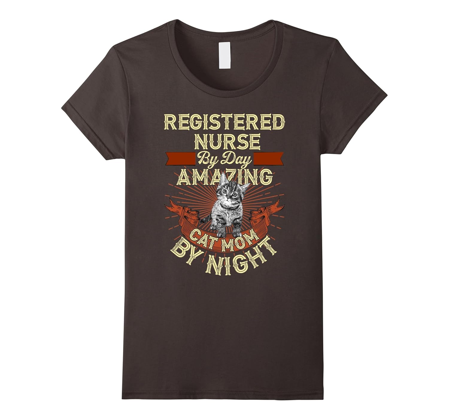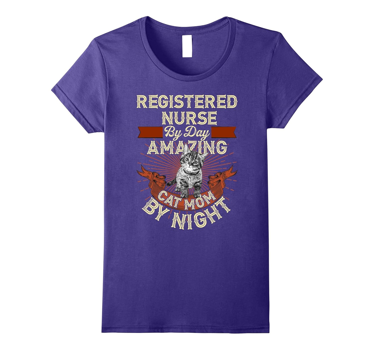 Solid colors: 100% Cotton; Heather Grey: 90% Cotton, 10% Polyester; All Other Heathers: 65% Cotton, 35% Polyester, Imported, Machine wash cold with like colors, dry low heat, Retro Distressed Cat Registered Nurse T-Shirt Design with saying “Registered Nurse By Day Amazing Cat Mom By Night”, Fun Novelty Gift For Birthdays, Family Get Togethers, Christmas, Halloween Or Any Special Occasions. Lightweight, Classic fit, Double-needle sleeve and bottom hem