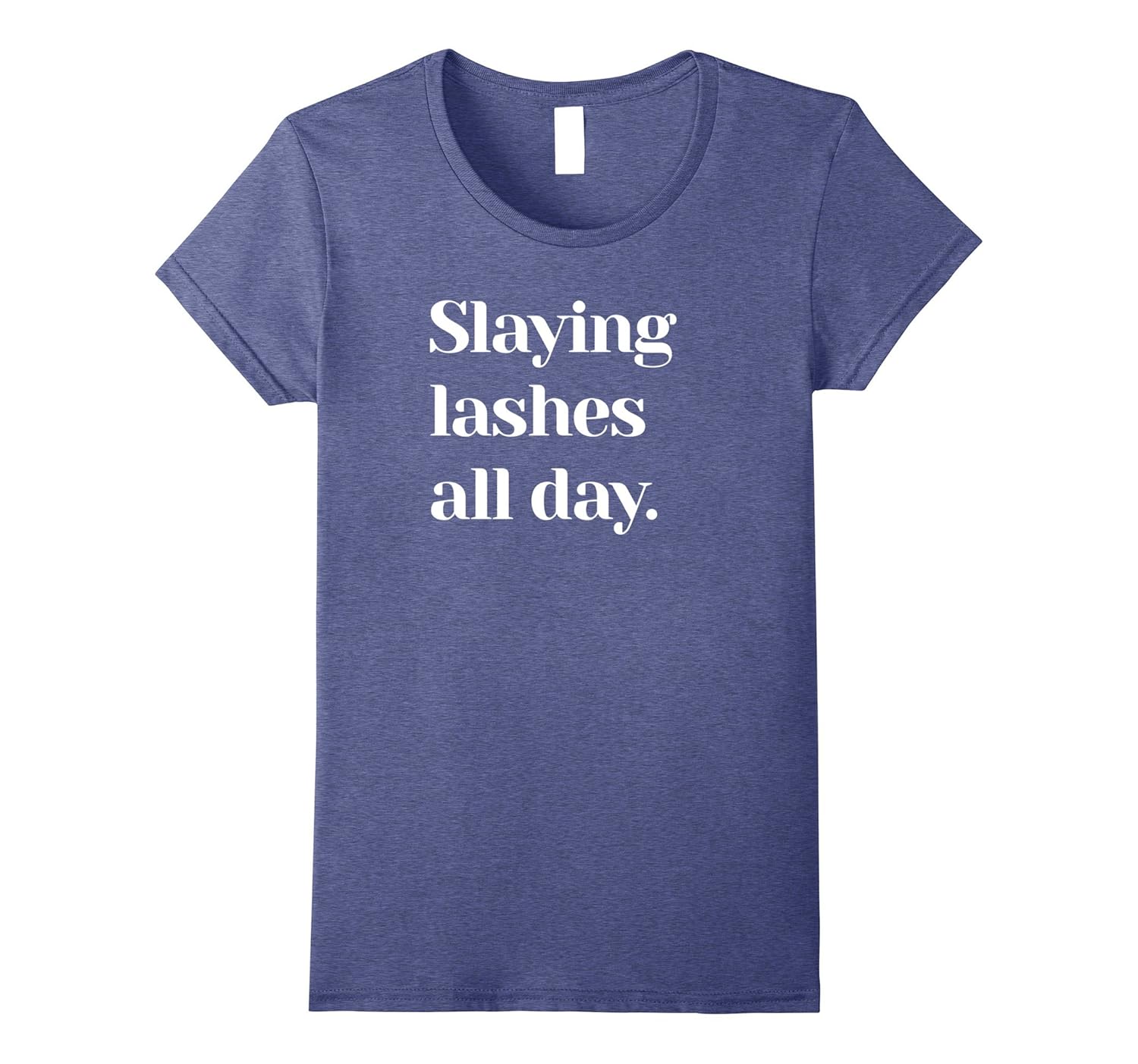 Solid colors: 100% Cotton; Heather Grey: 90% Cotton, 10% Polyester; All Other Heathers: 65% Cotton, 35% Polyester, Imported, Machine wash cold with like colors, dry low heat, This cute tee is a great gift for a girl who loves cosmetics, eyebrows, eyelash extensions and waxing. Perfect for an esthetician to wear to the spa or beauty salon!, Slaying Lashes All Day Cute T-Shirt For Estheticians runs a tad tight so please order a size up for a looser fit. Lightweight, Classic fit, Double-needle sleeve and bottom hem