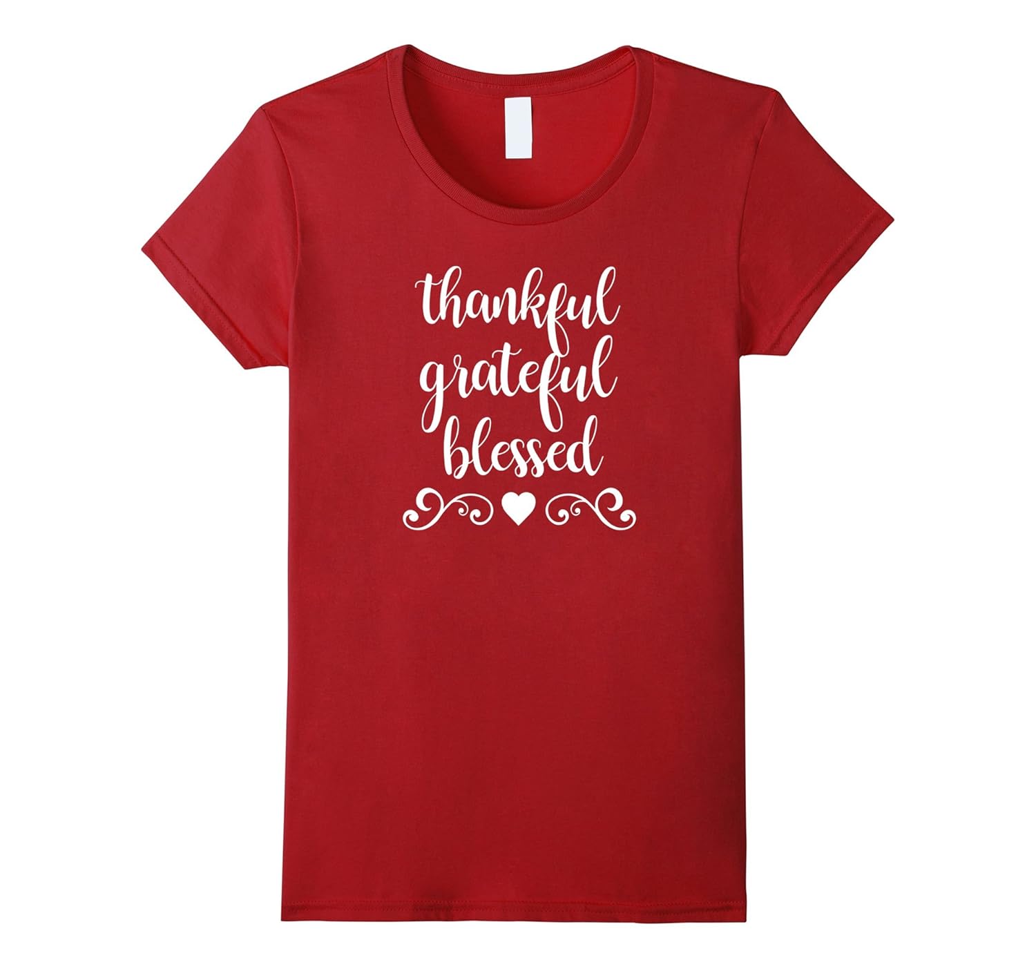Solid colors: 100% Cotton; Heather Grey: 90% Cotton, 10% Polyester; All Other Heathers: 65% Cotton, 35% Polyester, Imported, Machine wash cold with like colors, dry low heat, Your wife or daughter will love this cute tee, featuring a saying with arrow. Be thankful grateful blessed this Thanksgiving holiday. Lightweight, Classic fit, Double-needle sleeve and bottom hem