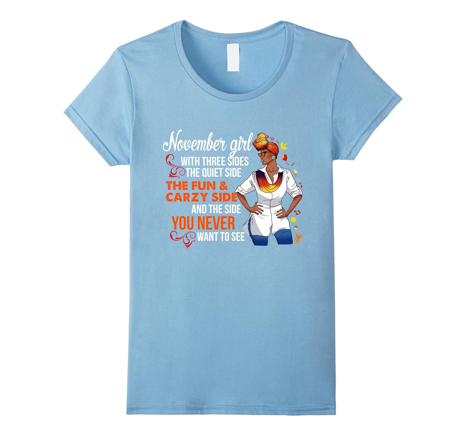 Solid colors: 100% Cotton; Heather Grey: 90% Cotton, 10% Polyester; All Other Heathers: 65% Cotton, 35% Polyester, Imported, Machine wash cold with like colors, dry low heat, November Girl I Have Three Sides The Quiet Side The Fun and Crazy Side And the Side You Never Want to See T-Shirt for Birthday party for women born in October. This is funny birthday shirts for Moms, daughters, grandmas, aunts, friend born in November. Birthday Queens T Shirt born in November Queen Three Sides Tee Birthday November T-Shirt gifts for little princesses, best birthday gift shirt for a girl because we all know Queens are born in November t-shirt make this birthday special. Lightweight, Classic fit, Double-needle sleeve and bottom hem