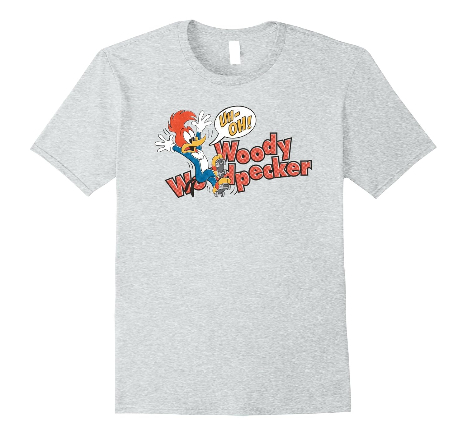 Solid colors: 100% Cotton; Heather Grey: 90% Cotton, 10% Polyester; All Other Heathers: 65% Cotton, 35% Polyester, Imported, Machine wash cold with like colors, dry low heat, Classic Woody Woodpecker UH-OH! t-shirt, Officially Licensed Universal Pictures Product, Lightweight, Classic fit, Double-needle sleeve and bottom hem