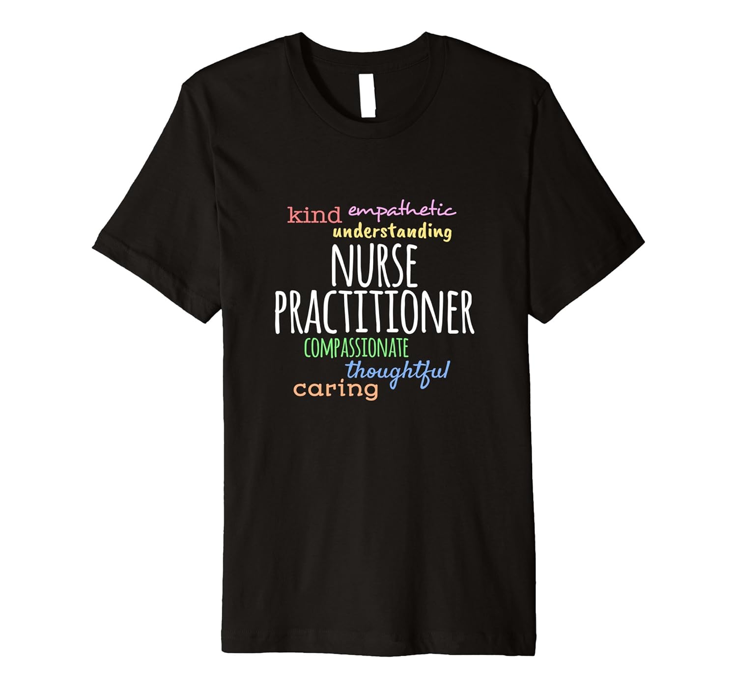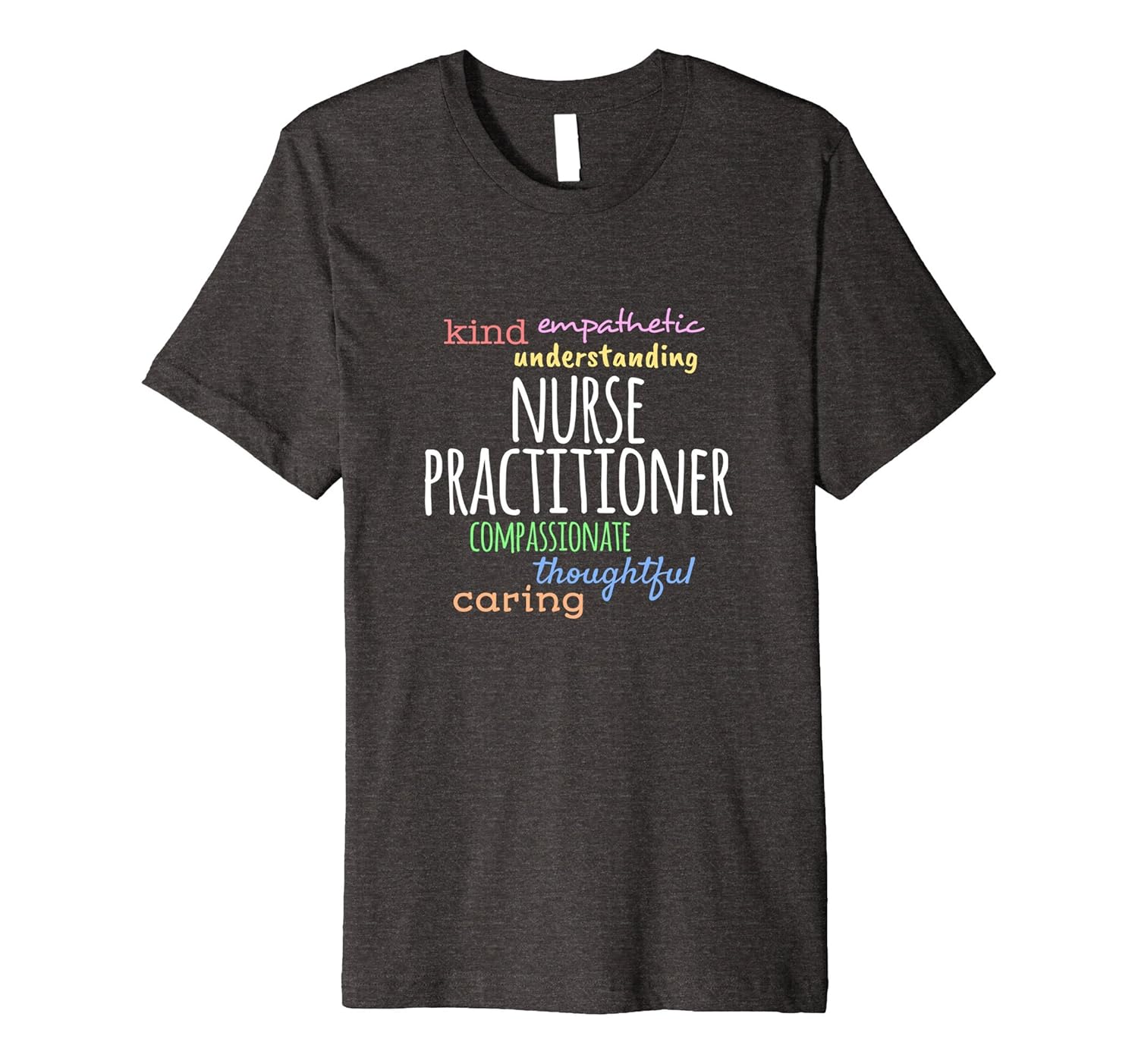 Solid colors: 100% Cotton; Heather Grey: 90% Cotton, 10% Polyester; All Other Heathers: 58% Cotton, 42% Polyester; Imported; Machine wash cold with like colors, dry low heat; This words to describe a nurse practitioner T Shirt is the perfect funny nurse t shirt! Makes a great mom or dad nurse appreciation gift or birthday gift or Christmas gift for nursing students! Perfect gift for Nursing Students, Registered Nurses, or LPNs; Fit: Slim (consider ordering a larger size for a looser fit); This nursing shirt has words on it like kind, understanding, empathetic, compassionate, thoughtful, caring. Makes great nurse stuff for a nurse practitioner, nurses week gift, nurse retirement, or traveling nurse!; This premium t-shirt is made of lightweight fine jersey fabric
