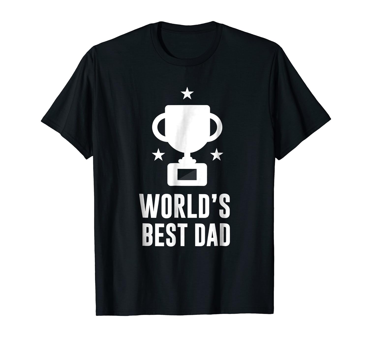 Solid colors: 100% Cotton; Heather Grey: 90% Cotton, 10% Polyester; All Other Heathers: 50% Cotton, 50% Polyester; Imported; Machine wash cold with like colors, dry low heat; Worlds Best Dad Trophy T-Shirt; Lightweight, Classic fit, Double-needle sleeve and bottom hem