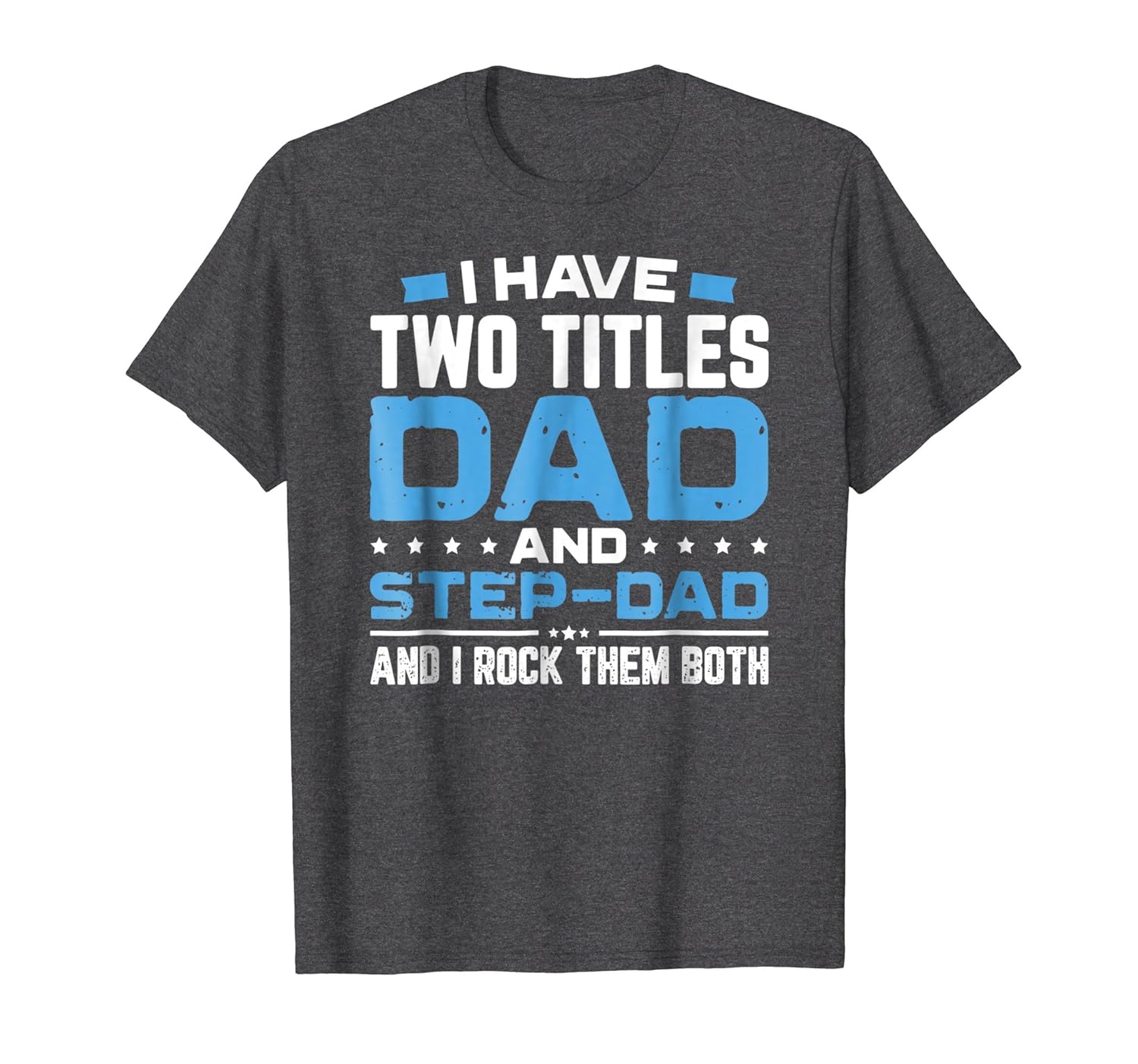Solid colors: 100% Cotton; Heather Grey: 90% Cotton, 10% Polyester; All Other Heathers: 50% Cotton, 50% Polyester; Imported; Machine wash cold with like colors, dry low heat; I have two titles Dad and Step Dad and I rock them both. Purchase this funny and cute fathers day t-shirt for your dad, husband or boyfriend this June 2018. A great step dad t-shirt for a son or daughter to give their daddy.; Also a great birthday or christmas gift for a basket. Father in law t-shirt.; Lightweight, Classic fit, Double-needle sleeve and bottom hem