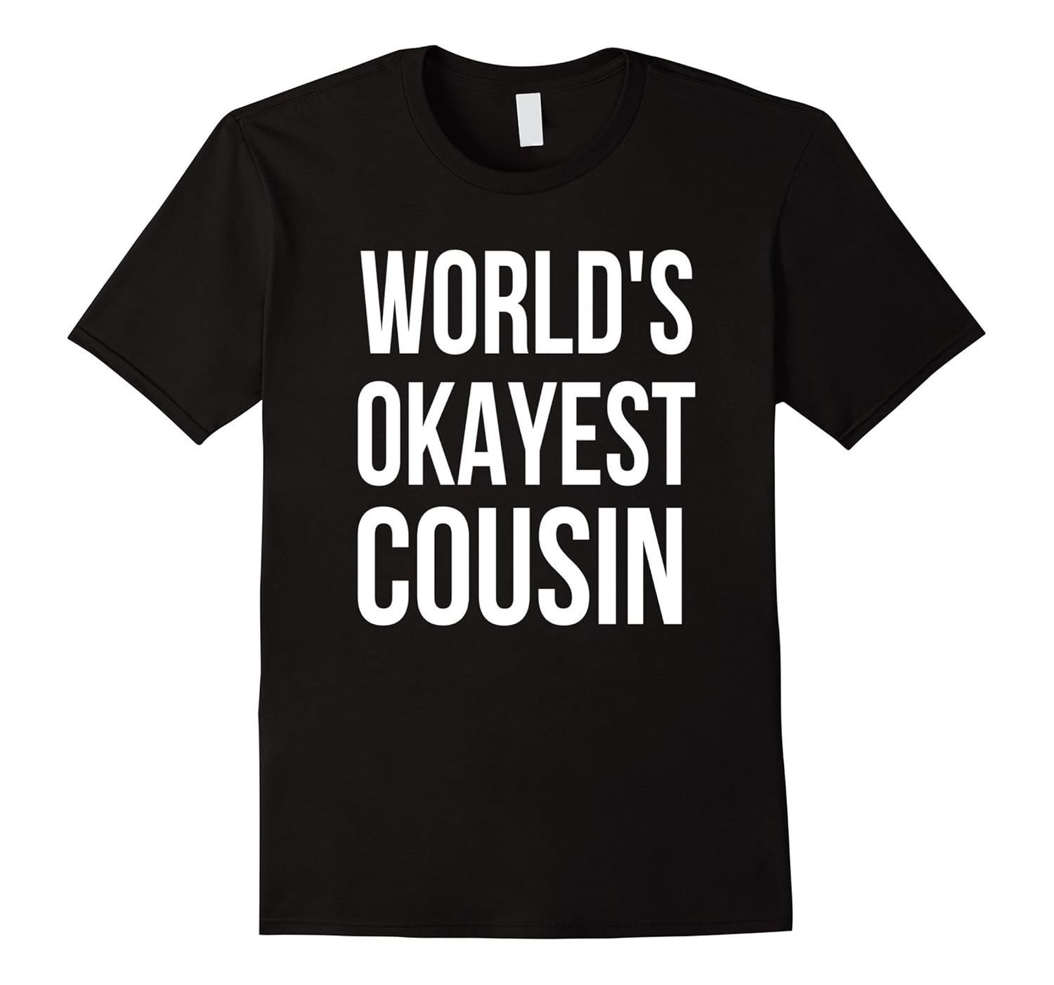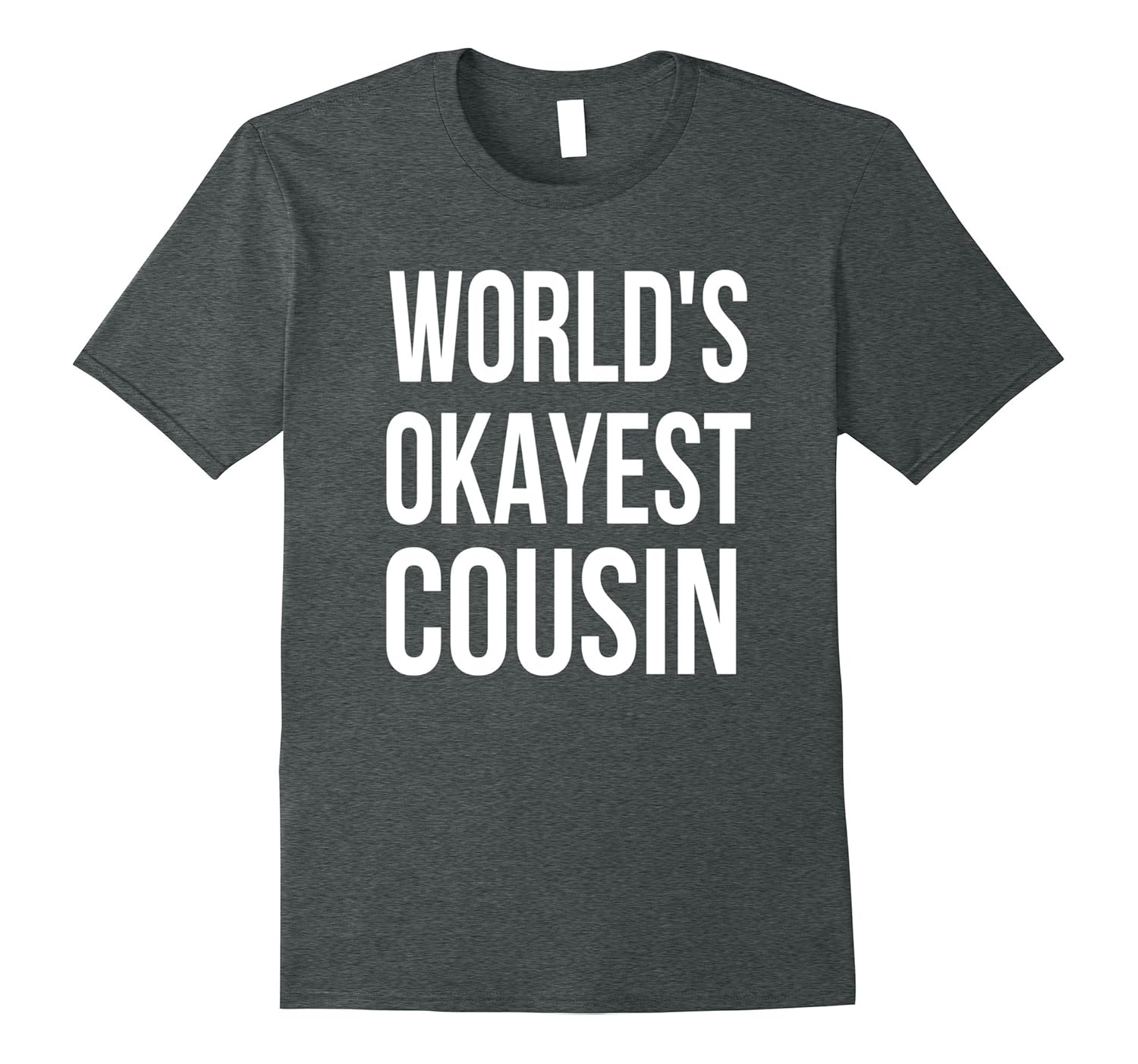 Solid colors: 100% Cotton; Heather Grey: 90% Cotton, 10% Polyester; All Other Heathers: 65% Cotton, 35% Polyester, Imported, Machine wash cold with like colors, dry low heat, This World”s Okayest Cousin is a cute and funny way to show how awesome your cousin is. Looking for a gift for your cousin. This shirt is the perfect gift for birthdays, Christmas etc! For a looser fit please order a size up. Lightweight, Classic fit, Double-needle sleeve and bottom hem