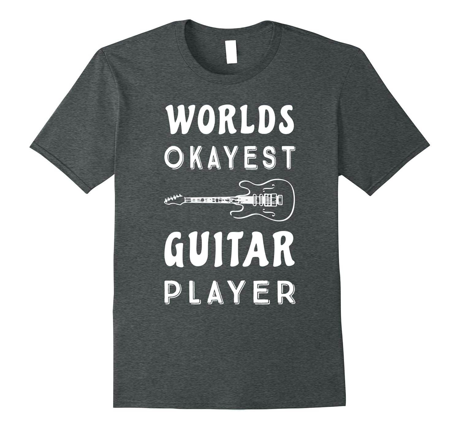 Solid colors: 100% Cotton; Heather Grey: 90% Cotton, 10% Polyester; All Other Heathers: 65% Cotton, 35% Polyester, Imported, Machine wash cold with like colors, dry low heat, Are you the World”s Okayest Guitar Player. Show your pride in shredding the guitar in your band by wearing this t-shirt. Whether you play heavy metal, hard rock, the blues, or folk music, this vintage distressed shirt will show just how good of a musician you really are. Lightweight, Classic fit, Double-needle sleeve and bottom hem