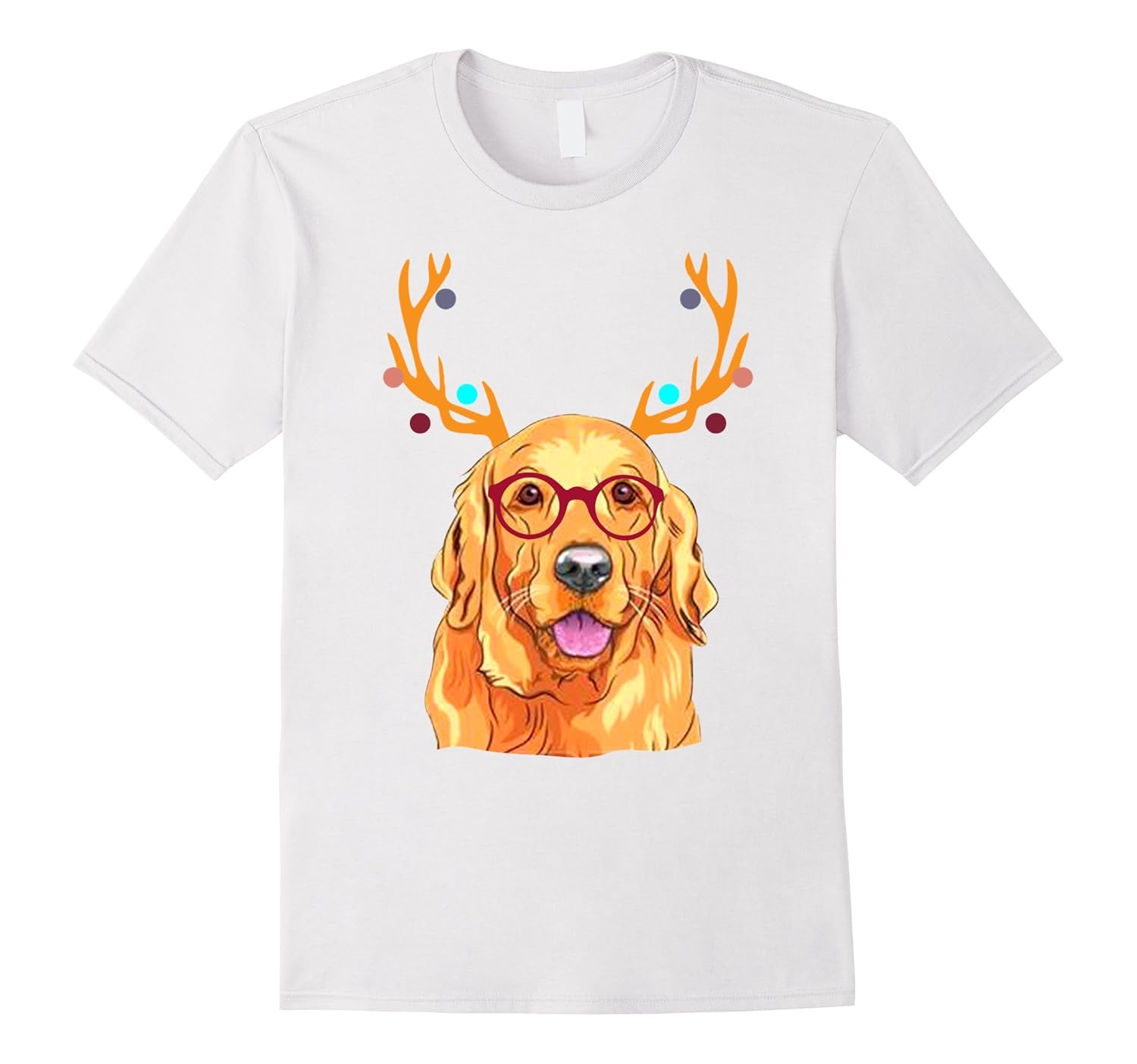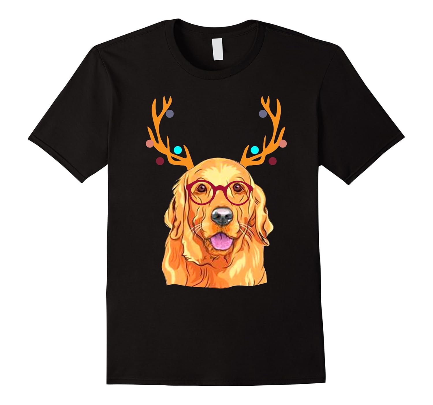 XMAS Funny Golden Retriever with Antlers Christmas T Shirt-ANZ
