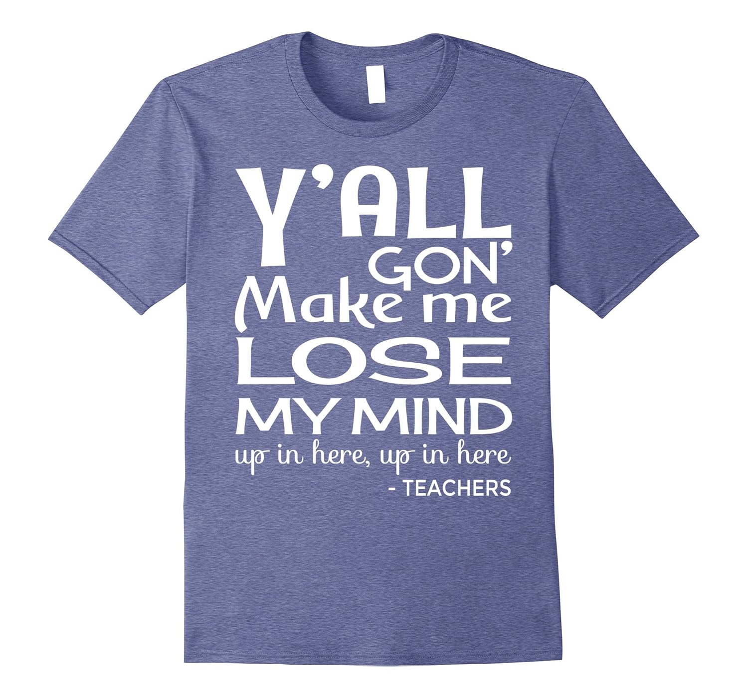 Solid colors: 100% Cotton; Heather Grey: 90% Cotton, 10% Polyester; All Other Heathers: 65% Cotton, 35% Polyester; Imported; Machine wash cold with like colors, dry low heat; Do you love to teach (sometimes lol)?! If youre a high school teacher or elementary teacher, then I think youll love this funny teaching t-shirt. This is a fitted-sized shirt, please order a size up for a looser fit.; Yall Gon Make Me Lose My Mind Funny Teacher T-Shirt is designed as a perfect gift for a birthday, Christmas, graduation, or any gift giving occasion.. Grab yours today!; Lightweight, Classic fit, Double-needle sleeve and bottom hem