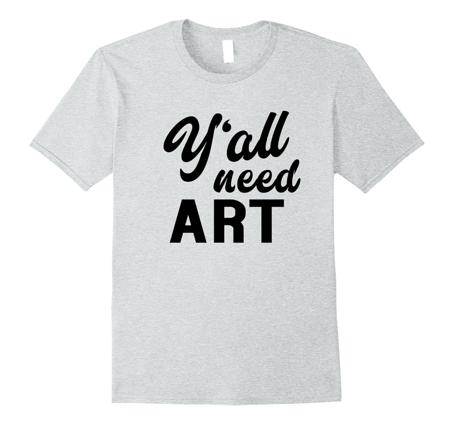 Solid colors: 100% Cotton; Heather Grey: 90% Cotton, 10% Polyester; All Other Heathers: 65% Cotton, 35% Polyester; Imported; Machine wash cold with like colors, dry low heat; Yall Need Art – Funny Artist Teacher Saying T-shirt; Great gift for anyone that loves teaching or museums; Lightweight, Classic fit, Double-needle sleeve and bottom hem