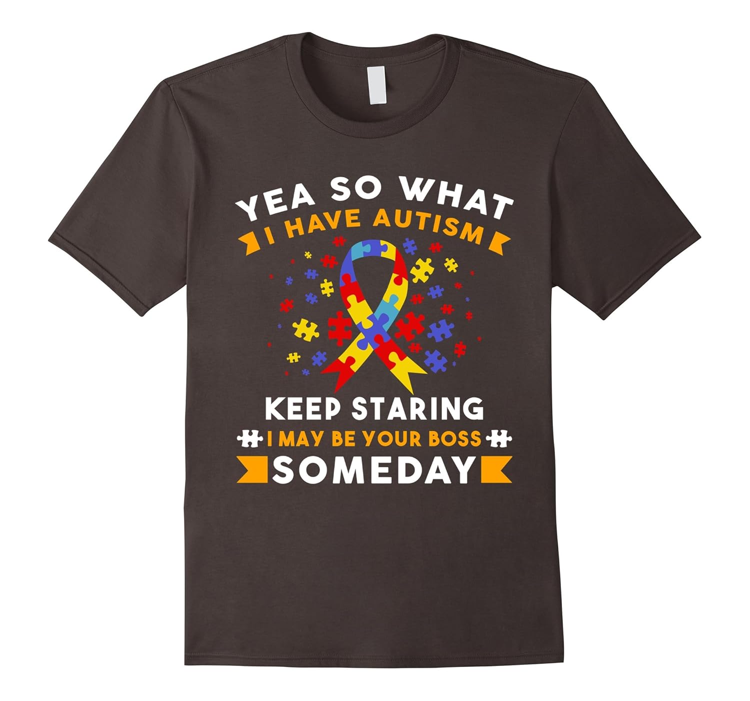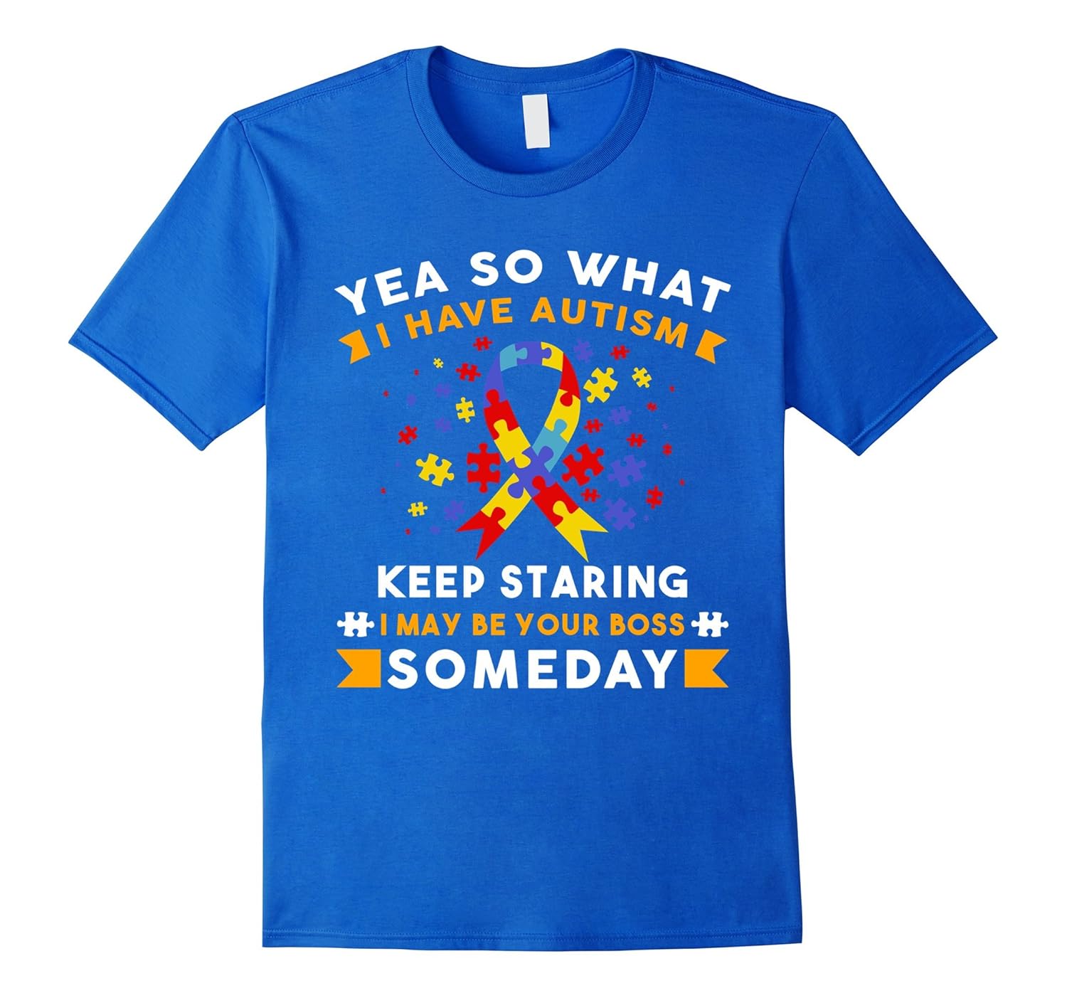 Solid colors: 100% Cotton; Heather Grey: 90% Cotton, 10% Polyester; All Other Heathers: 65% Cotton, 35% Polyester, Imported, Machine wash cold with like colors, dry low heat, Yea So What I Have Autism Keep Staring I May Be Your Boss Someday T-shirt for autism kids and autism mother, Autism support, Autistic boys, Autism dad, Autism mom, Autism girls, Autism teachers, Autism puzzle. Wear this T-shirt to support and raise the awareness to the autism spectrum. Be proud of your hero with autism in Autism Awareness Month and World Autism Awareness Day. Lightweight, Classic fit, Double-needle sleeve and bottom hem